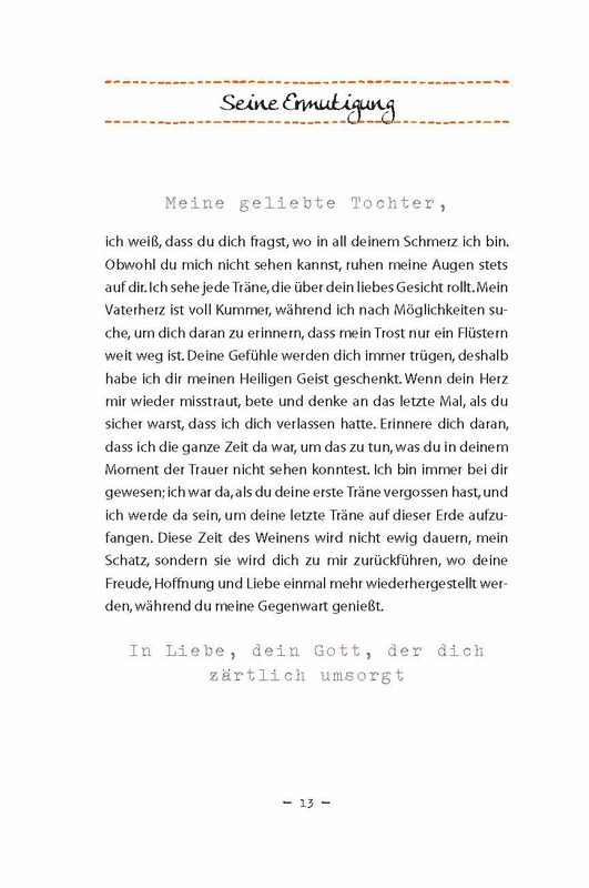 | Schlagworte | Bibelvers • Bibelverse • Briefe • Christliche Lebenshilfe; Geschenkbuch • Frauen • geliebte Tochter • Geschenkbuch • Gottes Vaterherz • König • Königstochter • Liebesbriefe • Liebeserklärung • Texte |