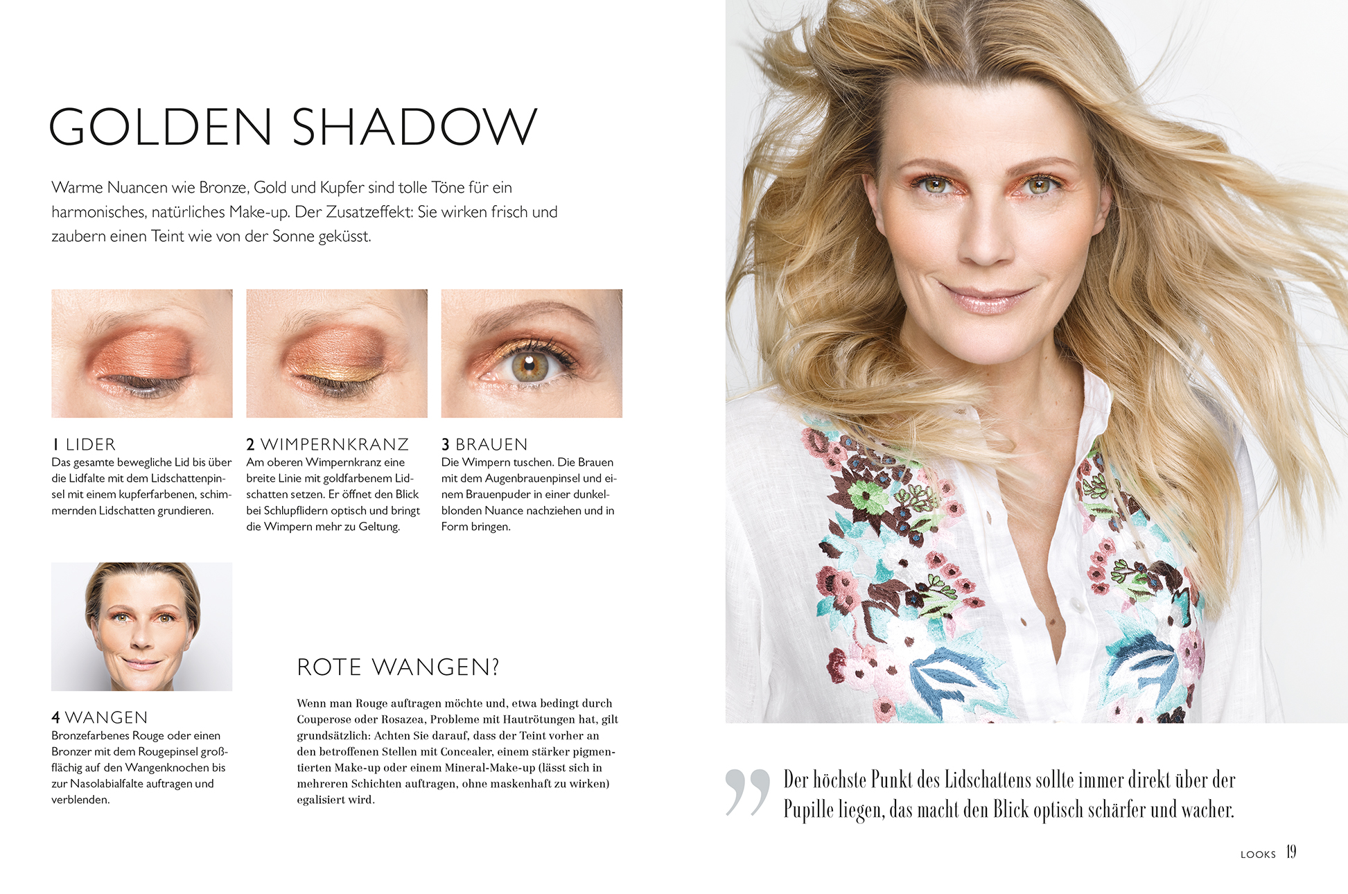 Schönheit ist keine Frage des Alters das beweist Make-up Artist Boris Entrup in seinem neuen Buch. Der Profi-Visagist verrät all seine Beauty-Geheimnisse für Frauen ab 40 und zeigt, wie sie sich selbstbewusst und schön fühlen können. Die acht sympathischen Models im Buch präsentieren unterschiedliche Haar- und Hauttypen und verschiedene Styles von natürlich bis glamourös, vom Tages- bis zum Abend-Make-up. Dazu kommen unzählige Praxistipps, wie man beispielsweise bei kleinen Fältchen mogeln kann, Schlupflider kaschiert und die eigene Persönlichkeit unterstreicht. Dank der Step-Fotos sind diese Tipps auch leicht umzusetzen. Zudem gibt es viele Infos zur richtigen Pflege von Gesicht, Haar und Körper.