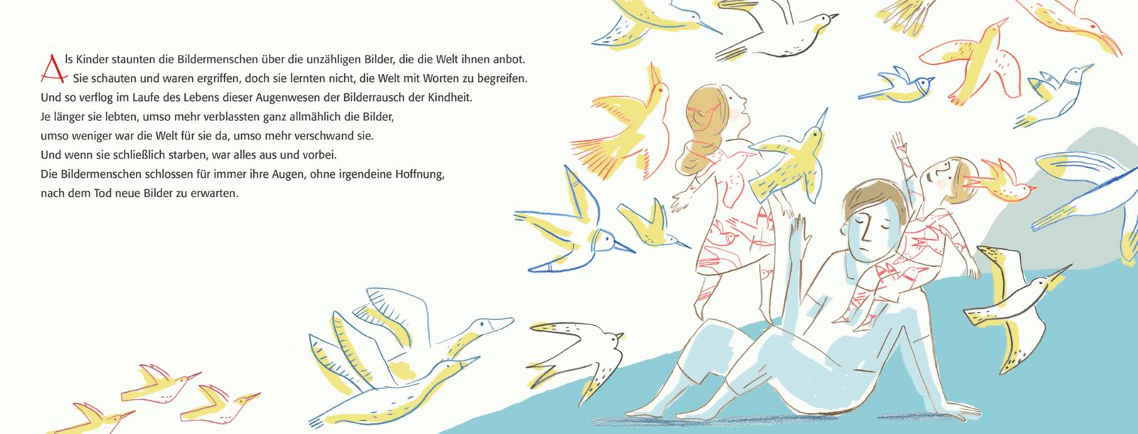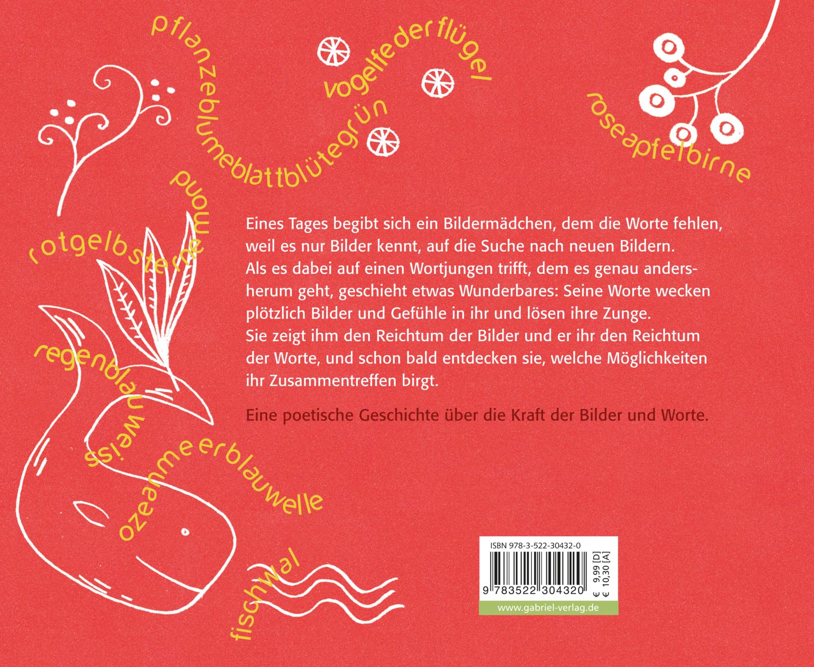 Eines Tages begibt sich ein Bildermädchen, dem die Worte fehlen, weil es nur Bilder kennt, auf die Suche nach neuen Bildern. Als es dabei auf einen Wortjungen trifft, dem es genau andersherum geht, geschieht etwas Wunderbares: Seine Worte wecken plötzlich Bilder und Gefühle in ihr und lösen ihre Zunge. Sie zeigt ihm den Reichtum der Bilder und er ihr den Reichtum der Worte und schon bald entdecken sie, welche Möglichkeiten ihr Zusammentreffen birgt. Eine poetische Geschichte über die Kraft der Bilder und Worte.