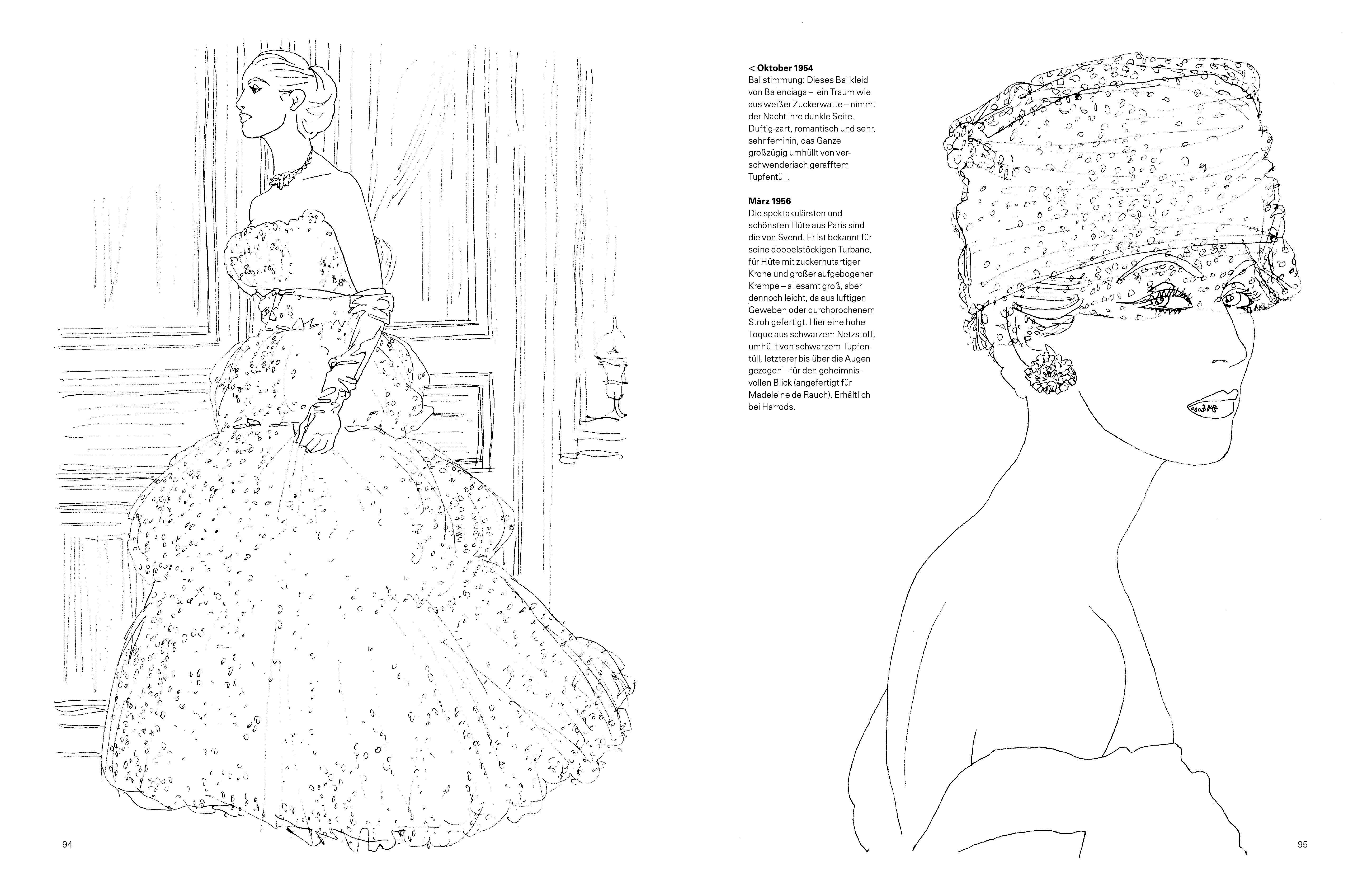 Hier gibt's die schönsten Roben und Accessoires der Fifties als Illustrationen zum Ausmalen, Träumen und Abschalten.