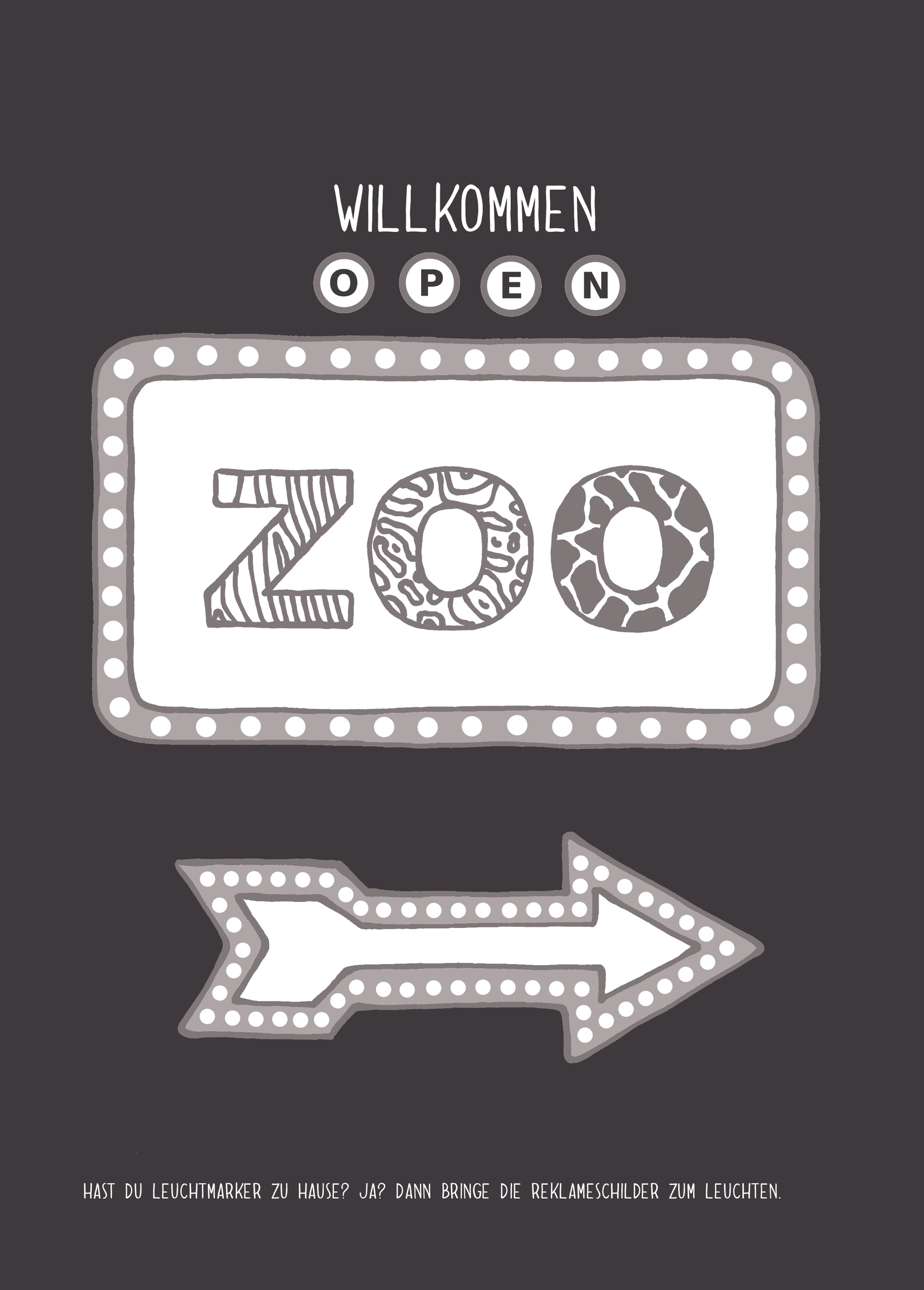Eine Theaterbühne - einen Feuerdrachen - zwei Bilderrahmen - zwei Leuchtreklameschilder - eine Tiefseewelt - zwei Labyrinthe - einen Leuchtturm - ein Segelschiff - drei Glühbirnen - einen Kinosaal - einige Kerzenständer - ein Ufo - eine Höhle - ein Feuerwerk - viele Lampions - fünf Skelette - eine Skyline - zwei Discotänzer - ein Zirkuszelt - eine Halloweenszene - vier Gewitterwolken - zwei Kissen - acht Geister - zwei Flugzeugfenster - vier Schafe - ein leeres Buch - eine Küche - zwei Pyjamas - eine Hexe - eine Nachtlandschaft - vier Schlafbrillen