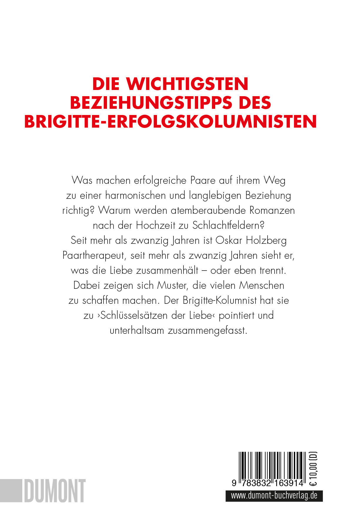 Seit mehr als zwanzig Jahren ist Oskar Holzberg Paartherapeut, seit mehr als zwanzig Jahren sieht er, was die Liebe zusammenhält – oder eben trennt. Dabei zeigen sich Muster, die vielen Menschen zu schaffen machen. Der Brigitte-Kolumnist hat sie zu ›Schlüsselsätzen der Liebe‹ pointiert und unterhaltsam zusammengefasst.