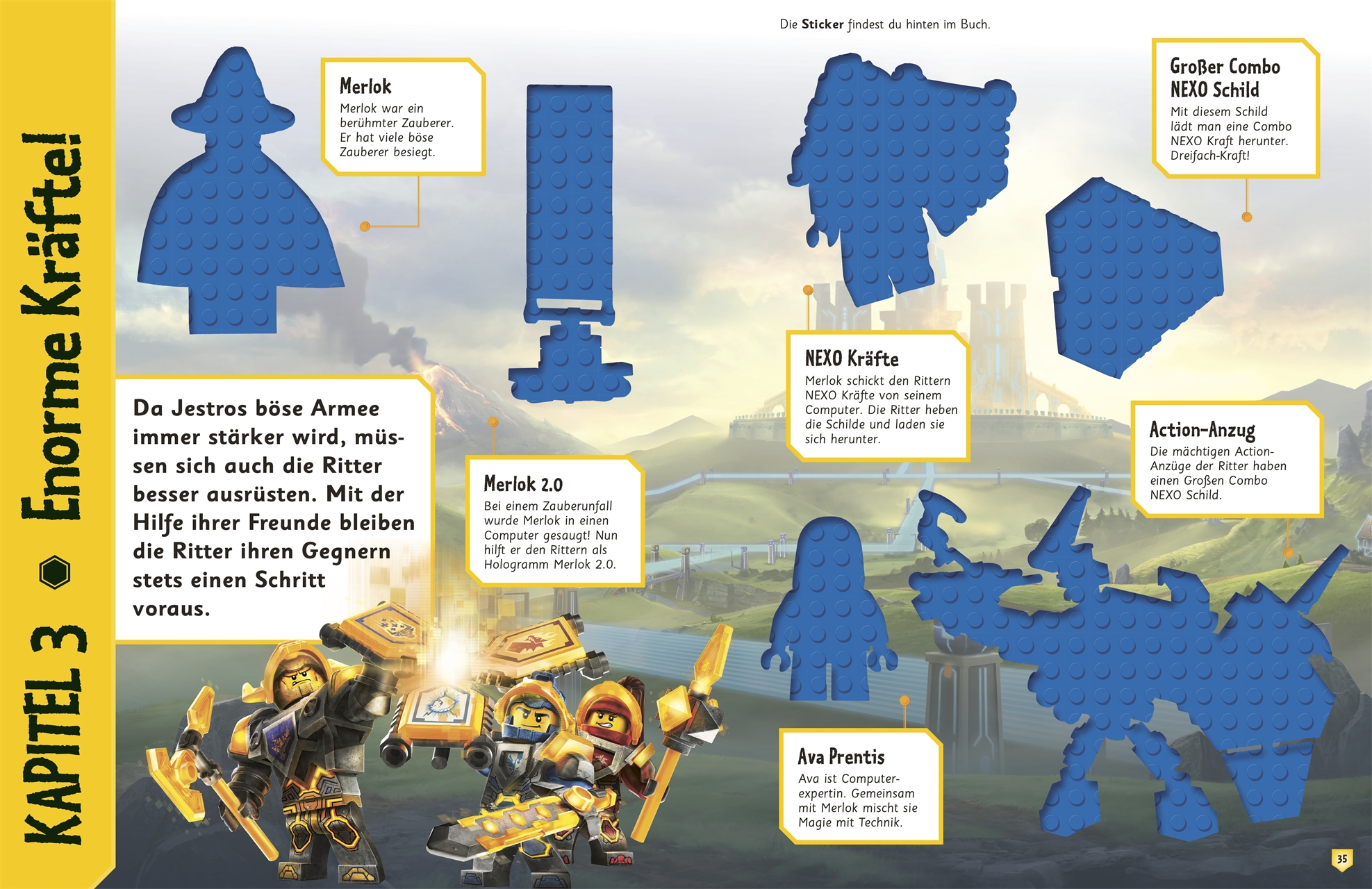 In diesem knallbunten Mitmachbuch findet ihr nicht nur jede Menge Unterhaltung, sondern auch allerhand Wissenswertes über die mutigen LEGO® NEXO KNIGHTS Ritter und die fiesen Pläne der Wolke des Monstrox. Neben abwechslungsreichen Aktivitäten wie Ausmalen, Stickern und Zeichnen gibt es zahlreiche Quizaufgaben, Spiele und Rätsel.