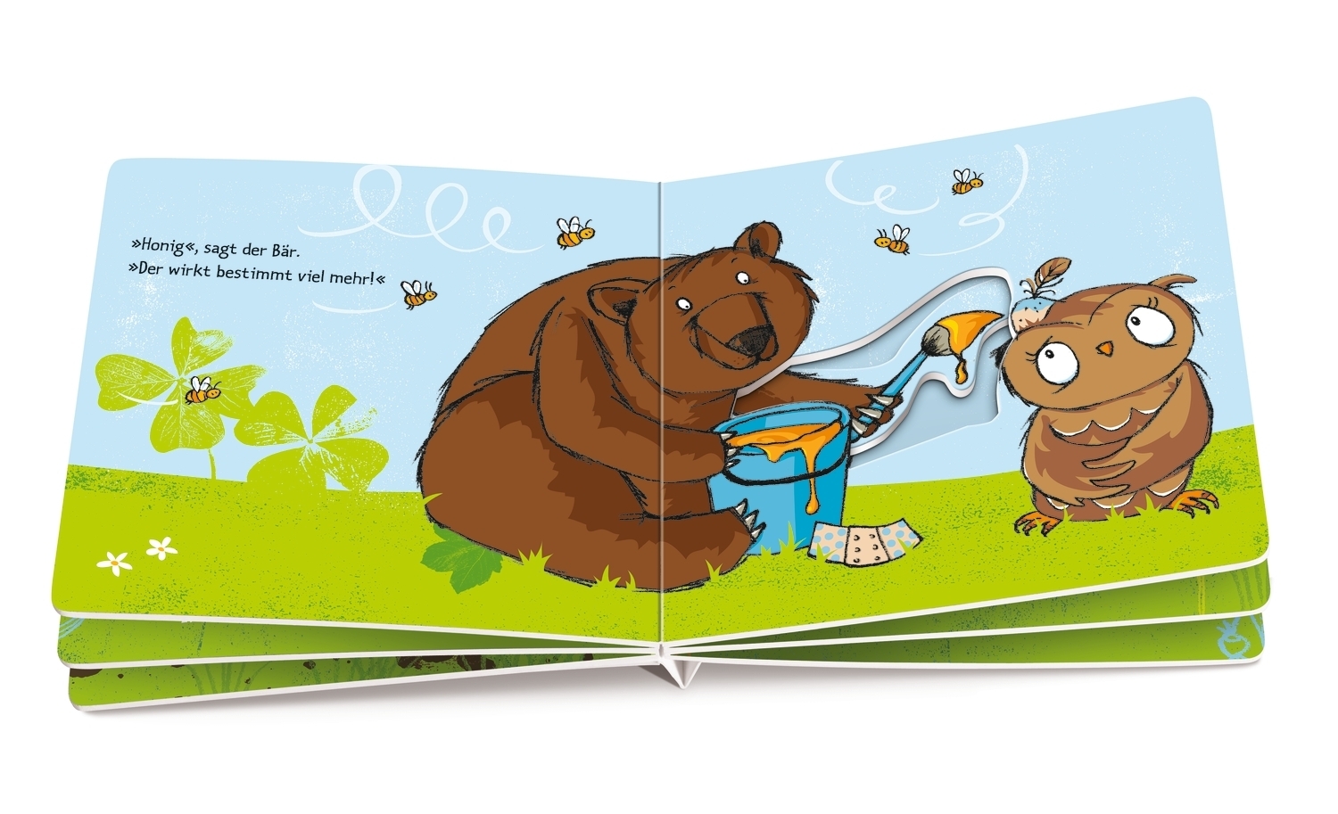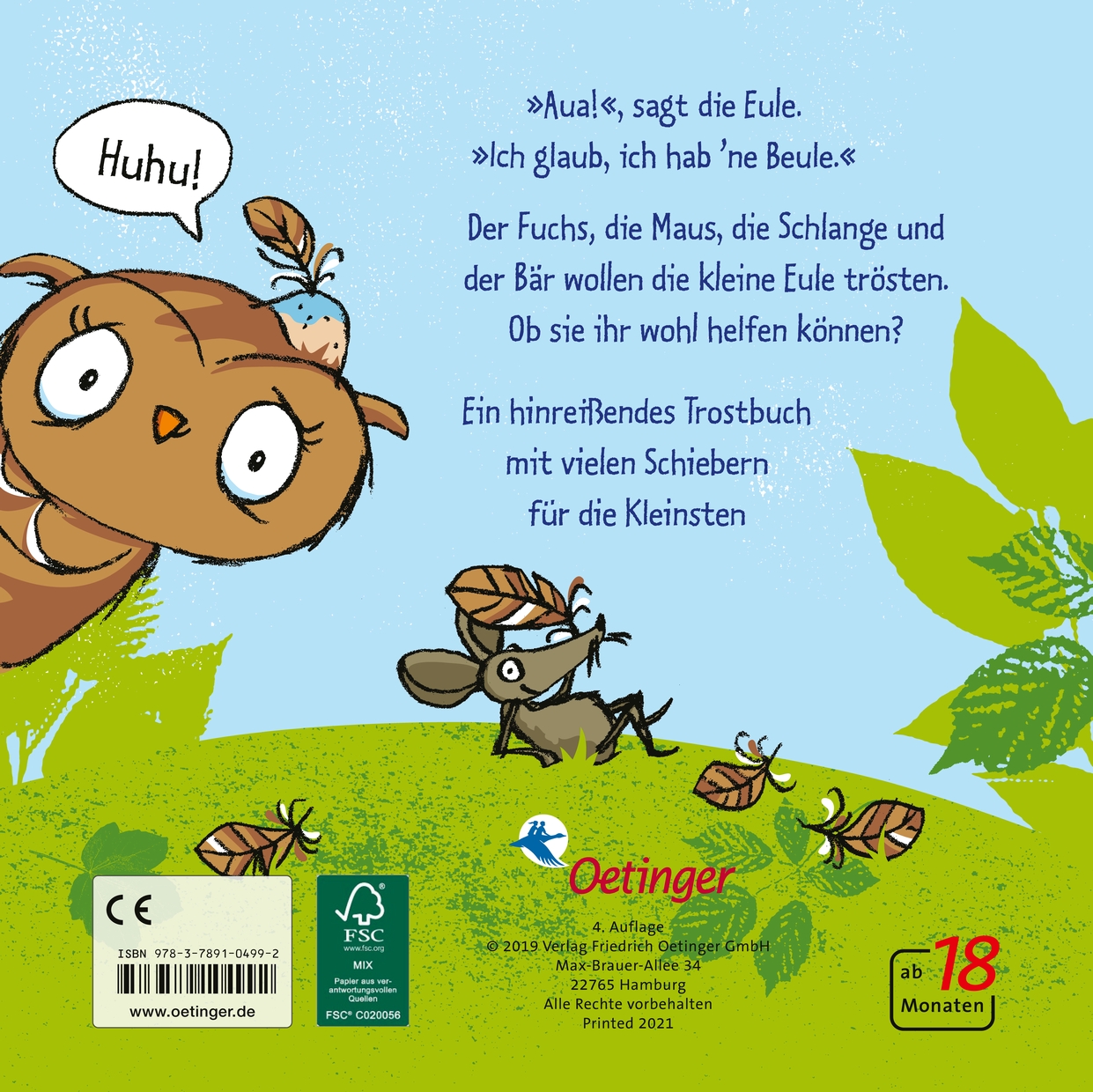 Die kleine Eule haben alle jetzt noch lieber, dank vieler Schieber! Die kleine Eule hat eine Beule. Der Fuchs, die Maus, die Schlange und der Bär versuchen sie zu trösten. "Schscht!", macht die Schlange und streichelt ihr die Wange. "Pusten tut sehr gut", macht der Fuchs ihr Mut. Das ist alles wunderbar, doch am Ende hilft nur eins: die Mama. Der Top-Bestseller mit Schiebern auf jeder Seite im großen Format und witzigen, charmanten Reimen, die trösten und ablenken!
