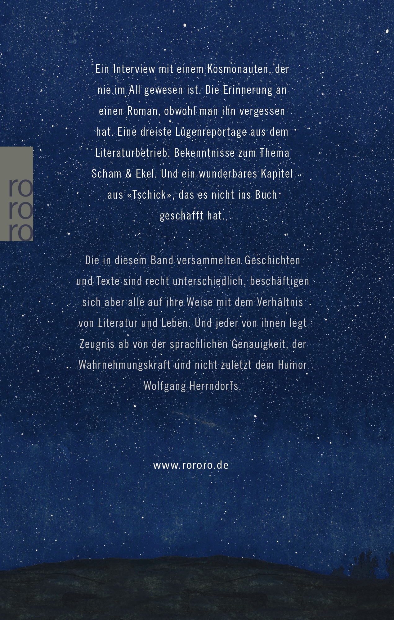 Ein Interview mit einem Kosmonauten, der nie im All gewesen ist. Die Erinnerung an einen Roman, obwohl man ihn vergessen hat. Eine dreiste Lügenreportage aus dem Literaturbetrieb. Bekenntnisse zum Thema Scham & Ekel. Und ein wunderbares Kapitel aus "Tschick", das es nicht ins Buch geschafft hat.