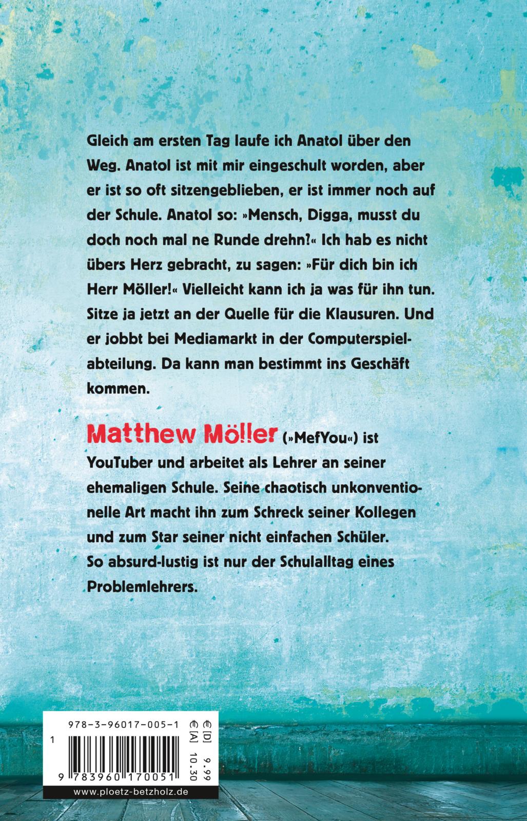 Matthew Möller, *1992, aufgewachsen in Hamburg, studiert Lehramt in Hamburg und ist auf YouTube als MefYou der coolste Lehrer Deutschlands. Mit seinen Schulvideos, Realtalk und Sport Challenges unterhält er mehr als 650 000 Abonnenten.