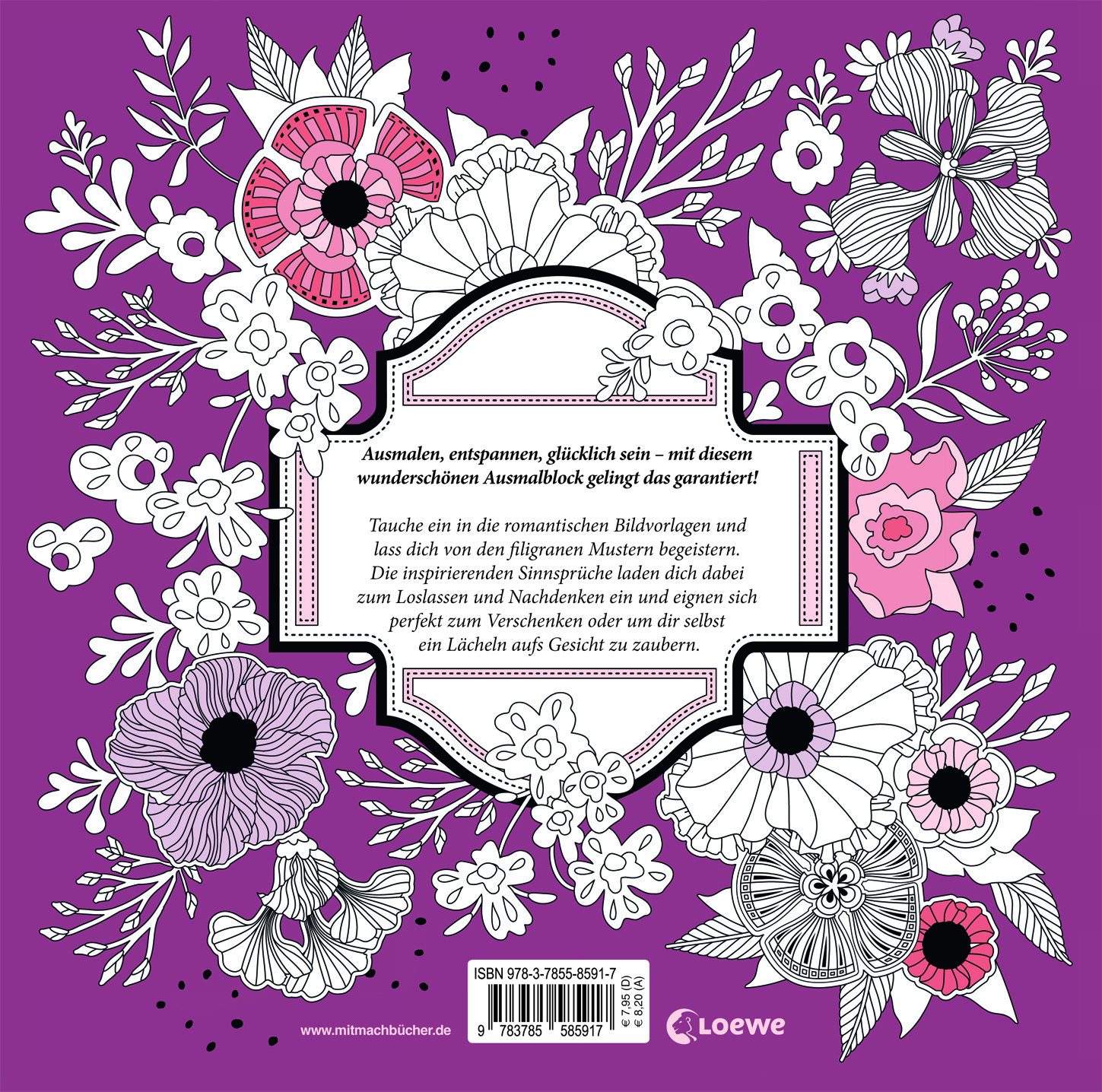 | Schlagworte | Ausmalen • Beschäftigung • entspannen loslassen relaxen • Entspannung Malbuch • Entspannung; Papeterie • Fantasie Kreativität • Geschenkbücher • Geschenke für Frauen • Geschenk Entspannung entspannen • Glück; Papeterie • Interaktive Bücher, Mitmachbücher • Kinder- und Jugendliteratur • Kinder zuhause beschäftigen • kreative Auszeit • kreatives Malen und Gestalten • kreativ geschenk • Malbücher • Malbuch für Erwachsene • Malbuch für Erwachsene (Papeterie) • malen entspannen • was tun gegen stress |
