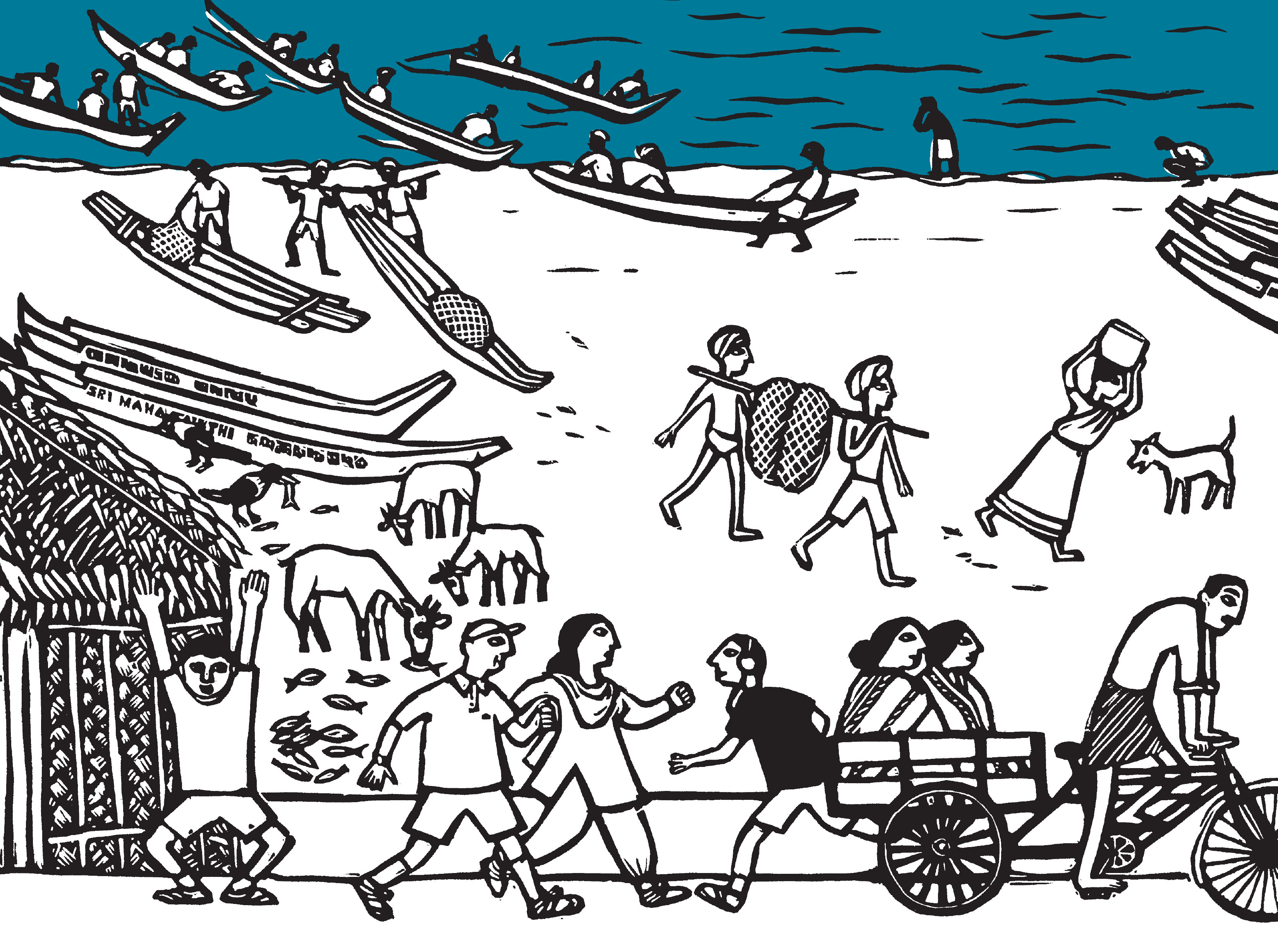 This beach on the South Indian coast is full of activity. Have fun exploring, colouring, and adding to this never-ending book