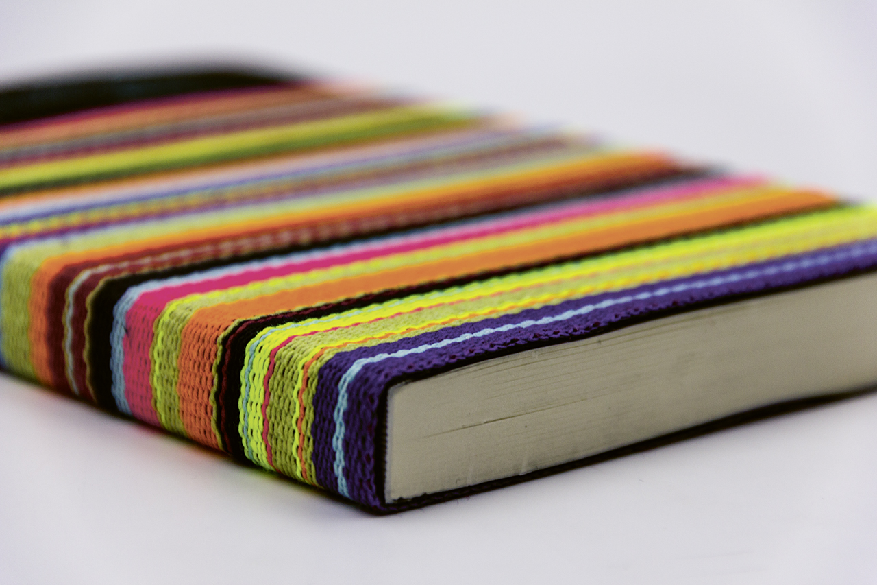Ein streifenbuntes Notizbuch in neuem Farbklang