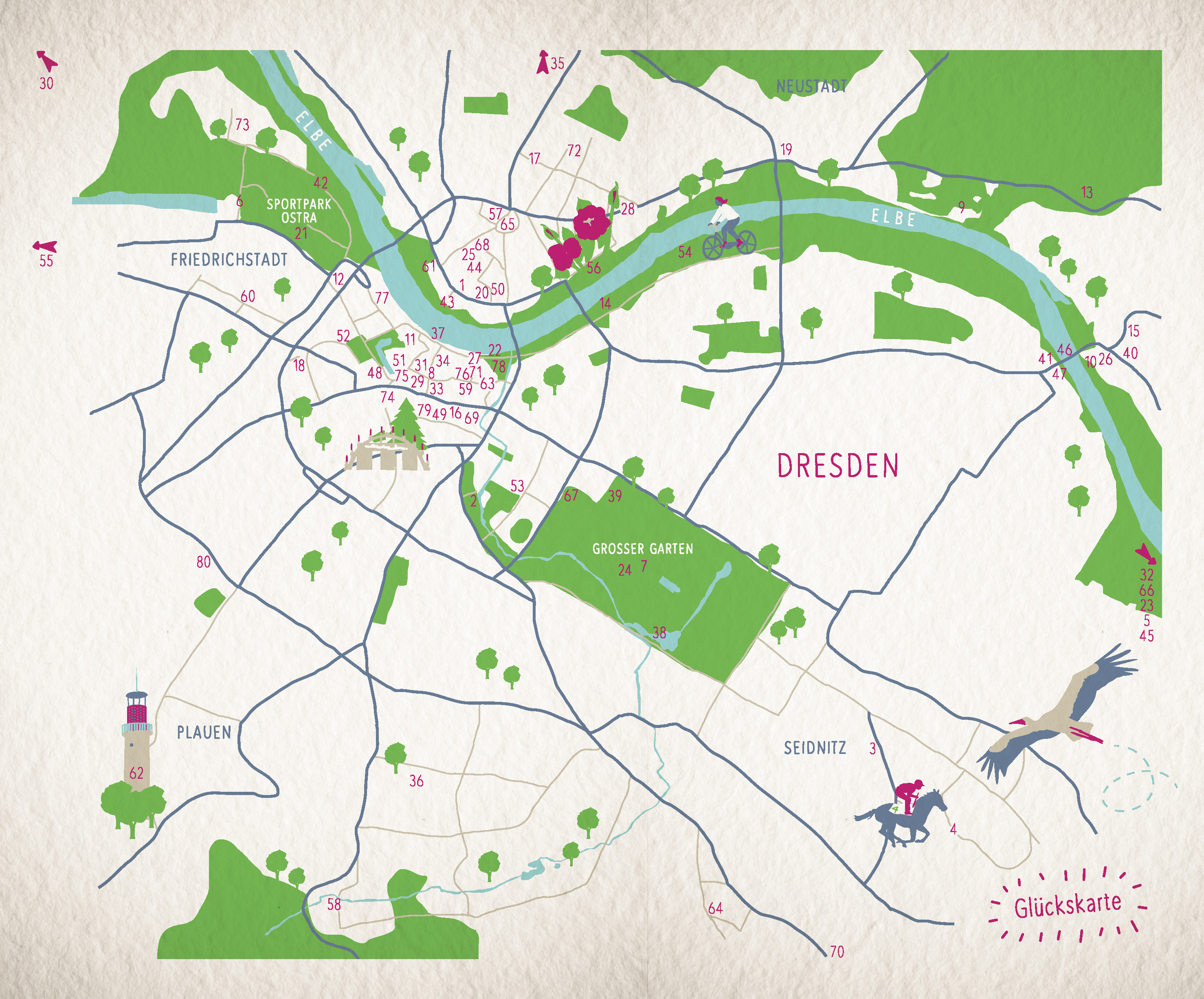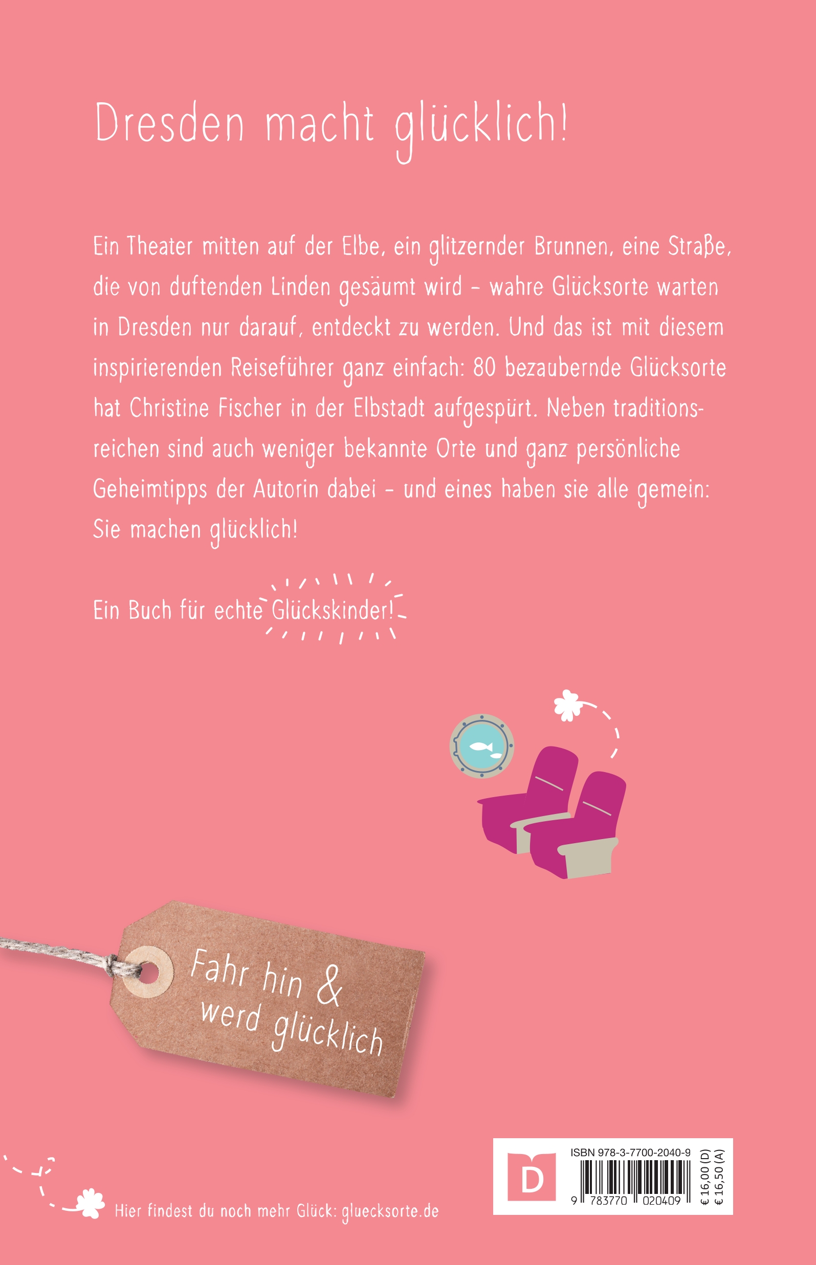 Ein Theater mitten auf der Elbe, ein glitzernder Brunnen, eine Straße, die von duftenden Linden gesäumt wird - wahre Glücksorte warten in Dresden nur darauf, entdeckt zu werden. Und das ist mit diesem inspirierenden Reiseführer ganz einfach: 80 bezaubernde Glücksorte hat Christine Fischer in der Elbstadt aufgespürt. Neben traditionsreichen sind auch weniger bekannte Orte und ganz persönliche Geheimtipps der Autorin dabei - und eines haben sie alle gemein: Sie machen glücklich!