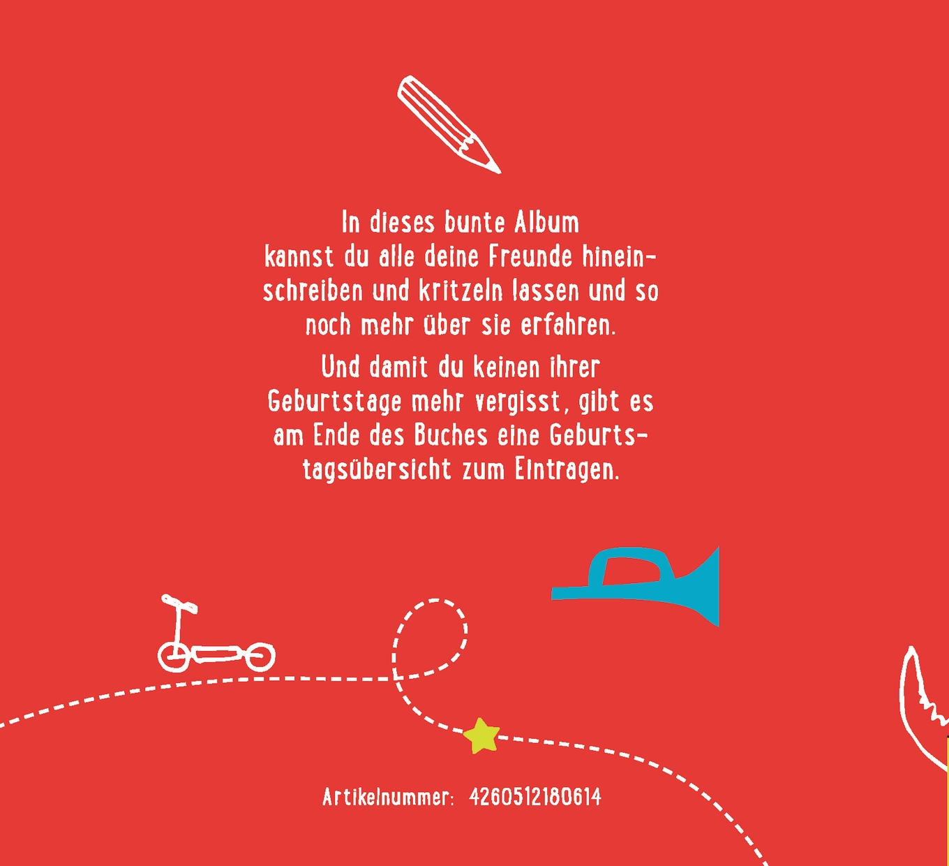 | Schlagworte | Einschulung • Erinnerung • Erinnerungsalbum • Erste Freundschaft • Freundebuch • Freundschaftsbuch • Geschenk • Grundschule • Kinderbuch ab 5 • Schreibwaren • Schulanfang • Schulfreunde |