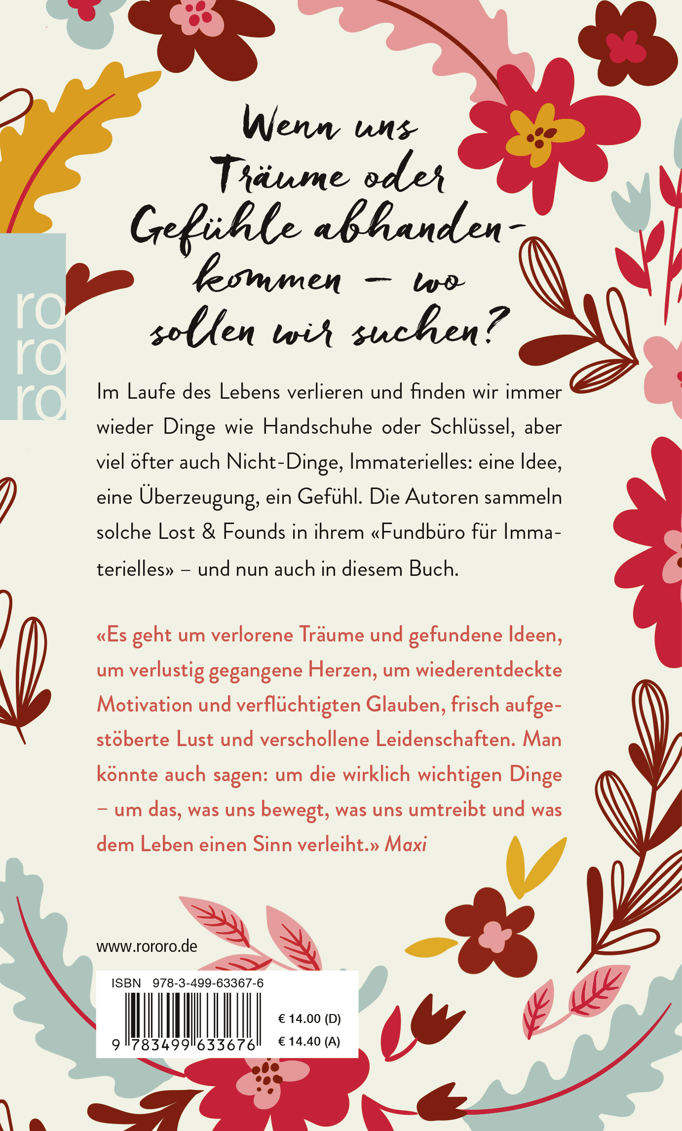 Im Laufe des Lebens verlieren und finden wir immer wieder Dinge wie Handschuhe oder Schlüssel, aber auch Nicht-Dinge, Immaterielles: eine Idee, eine Überzeugung, ein Gefühl. Plötzlich merken wir, dass die Hoffnung auf der Strecke geblieben ist, die Motivation abhanden gekommen. Oder wir entdecken eine Leidenschaft, den Glauben an uns oder an Größeres. Die Autoren sammeln persönliche Verlust und Fundgeschichten und laden den Leser ein: auf eine anregende, eindringliche Reise: Eine Expedition ins Innenleben der Mitmenschen - und gleichzeitig zum eigenen Selbst und Sein.