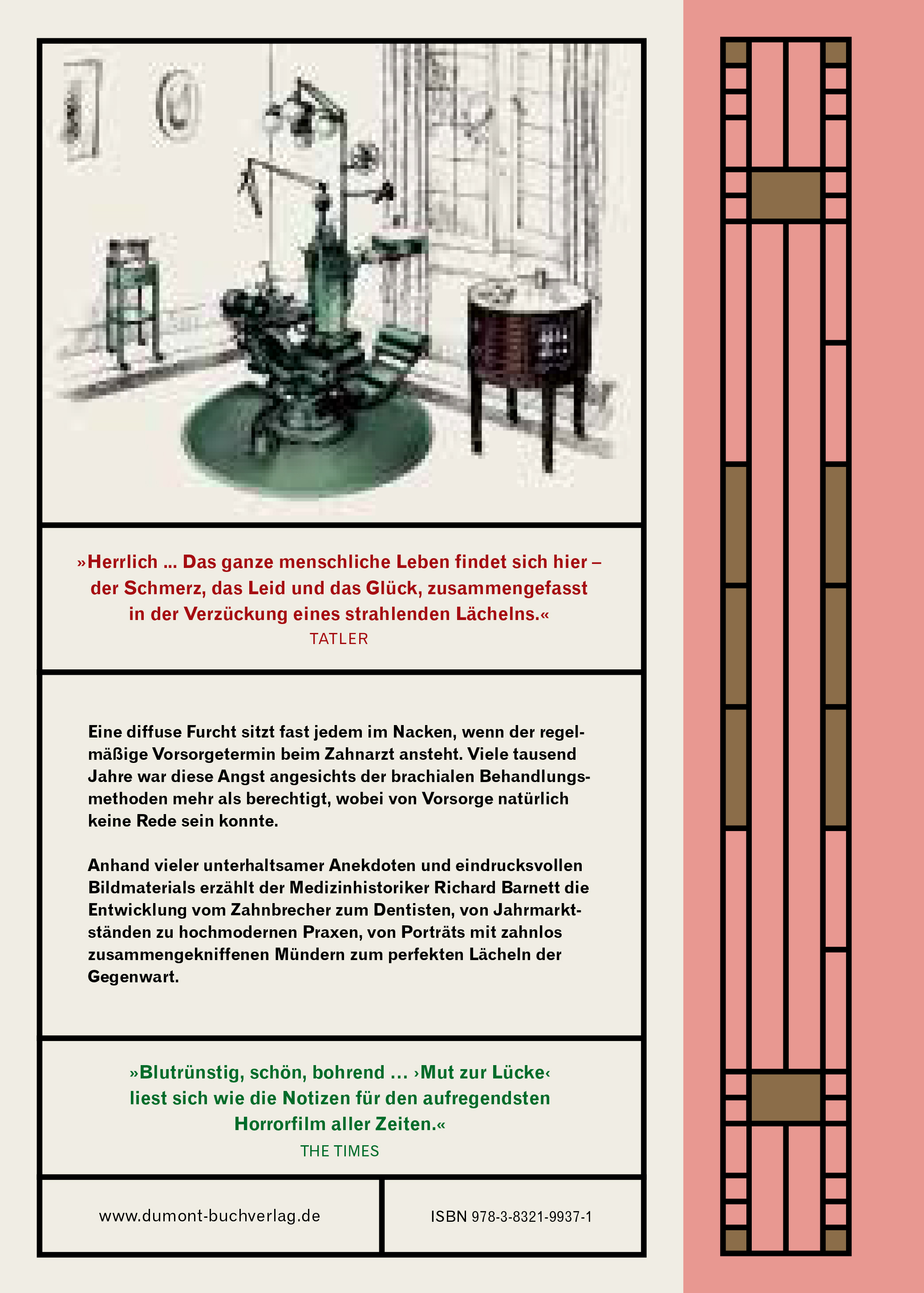 »In ›Mut zur Lücke‹ erzählt Richard Barnett die Geschichte der Zahnheilkunde. Das Buch ist reich illustriert mit den schönsten zahnmedizinischen Geräten […].« Matthias Halbig, KIELER NACHRICHTEN