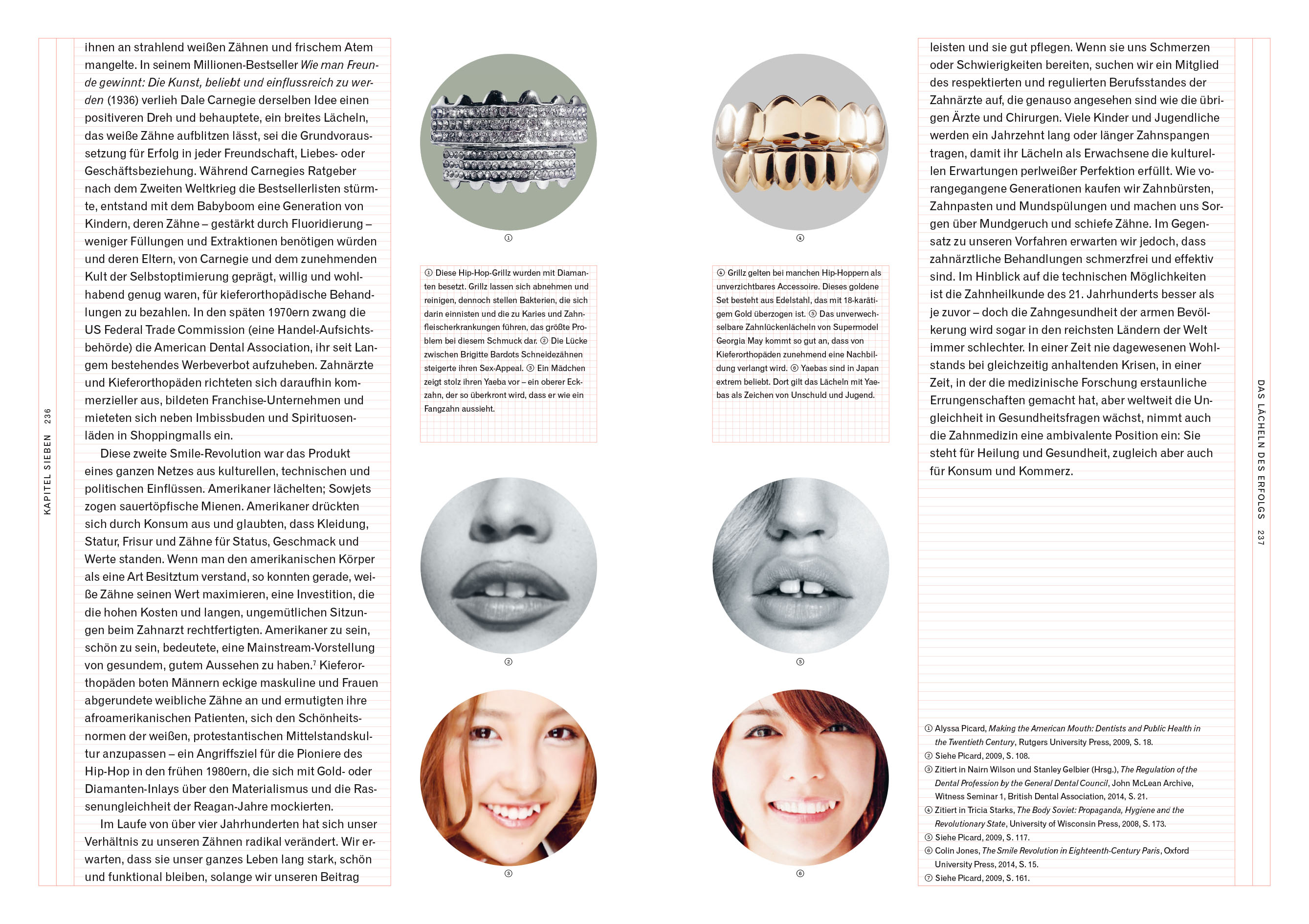 Der Medizinhistoriker Richard Barnett erzählt anhand vieler unterhaltsamer Anekdoten und eindrucksvollen Bildmaterials von der Entwicklung vom Zahnbrecher zum Dentisten, von Jahrmarktständen zu hochmodernen Praxen, von Porträts mit zahnlos zusammengekniffenen Mündern zum strahlenden Lachen auf den allgegenwärtigen Selfies.