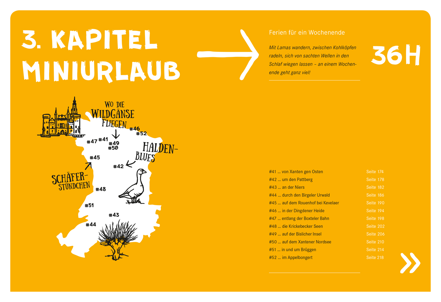 Ob wandern, radeln, paddeln oder in aller Ruhe die Natur genießen: 52 kleine und große Eskapaden machen Lust, die schönsten Ecken am Niederrhein zu entdecken. Für wenige Stunden, einen Tag oder ein Wochenende - unwiderstehliche Ausflüge ins Grüne warten. Im Westen Nordrhein-Westfalens den Urwald vor der Haustür entdecken, mit Störchen klappern, auf Ameisenpfaden wandern - es ist so einfach, mehr zu erleben als das Bekannte. Also ab nach draußen!