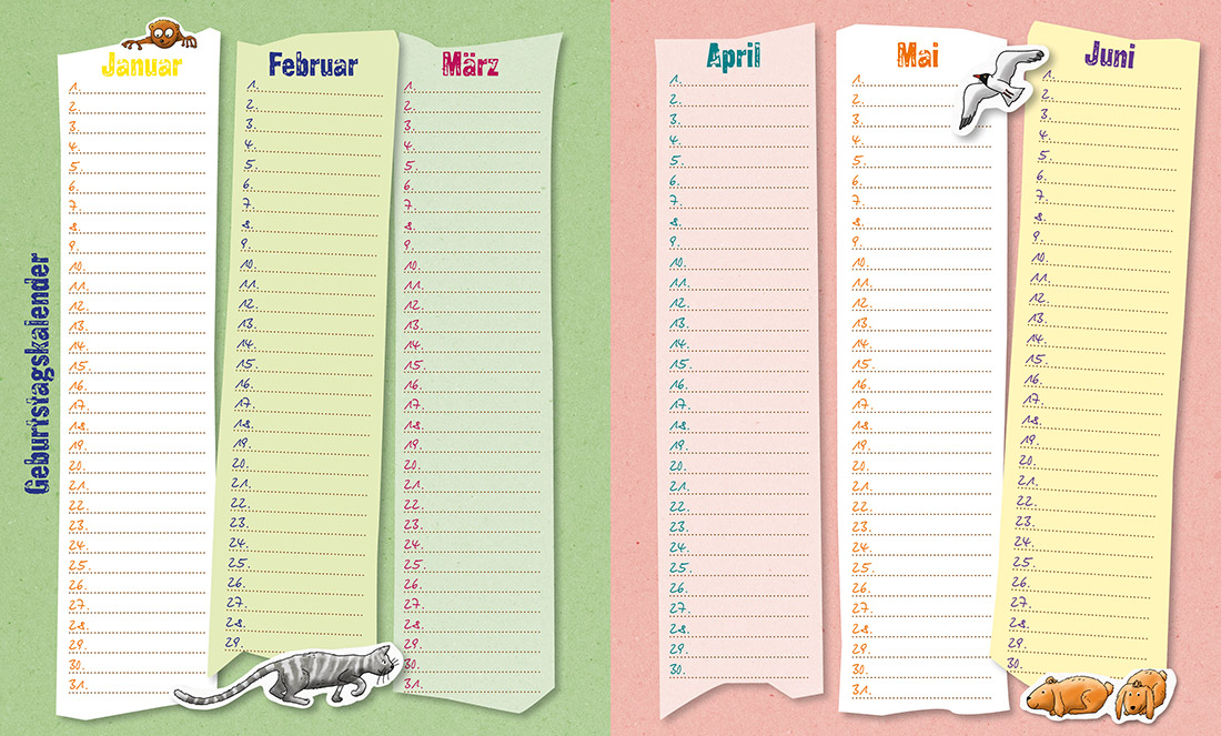 Auf den 128 farbenfrohen Seiten dieses Albums ist viel Platz zum Eintragen, Ankreuzen und Einkleben! Hier können sich die besten Freundinnen und Freunde verewigen. Die Grünen Piraten Jannik, Lennart, Pauline, Ben und Flora haben ihren Steckbrief natürlich auch schon ausgefüllt. Mit Jahreskalender zum Eintragen der Geburtstage.