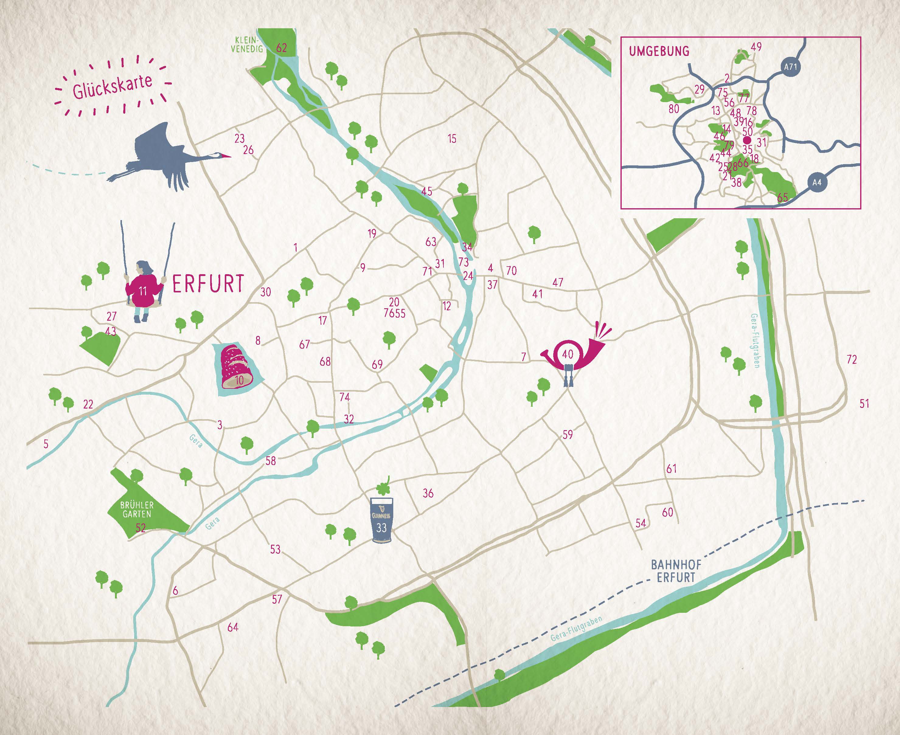 Erfurt, eine Liebeserklärung! Wohlfühlküche, Kindheitserinnerungen und beflügelnde Auszeiten: Erfurt ist eine Schatztruhe voll Glück! Als absolute Erfurtliebhaberin weiß Jessika Fichtel, hinter welchen Ecken sich Momente der Vollkommenheit verbergen. 80 ganz besondere Orte hat sie hier zusammengestellt. Und egal ob kulinarischer Wochenmarkt, gestrickte Kunstwerke oder sogar ein Haus ohne Dach - sie alle schenken pures Glück. Ein Buch für echte Glückskinder!
