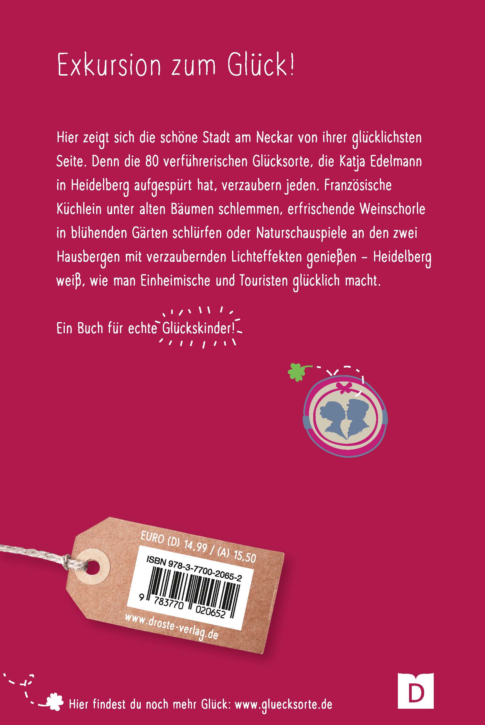 Hier zeigt sich die schöne Stadt am Neckar von ihrer glücklichsten Seite. Denn die 80 verführerischen Glücksorte, die Katja Edelmann in Heidelberg aufgespürt hat, verzaubern jeden. Französische Küchlein unter alten Bäumen schlemmen, erfrischende Weinschorle in blühenden Gärten schlürfen oder Naturschauspiele an den zwei Hausbergen mit verzaubernden Lichteffekten genießen - Heidelberg weiß, wie man Einheimische und Touristen glücklich macht. Ein Buch für echte Glückskinder!