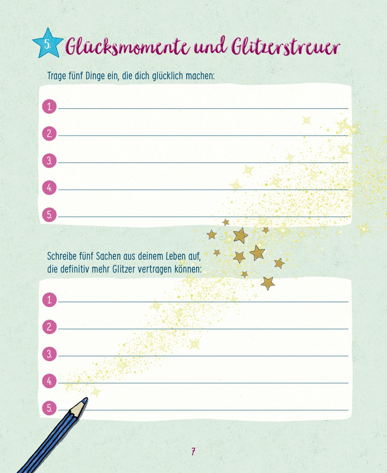 Eltern, Schule, Freunde - darf's etwas mehr Glitzer im Alltag sein? Dann kommt dieses Mitmachbuch genau richtig! Mit seinem Fokus auf Kreativität und Achtsamkeit motiviert es Mädchen ab 10 Jahren dazu, Neues auszuprobieren. Ob Glückskeks-Rezept, Yogaübung oder Würfel-Orakel - auf jeder Seite finden Mädchen inspirierende Aufgaben und Projekte. Neben allerlei Bastelanleitungen und Rezept-Ideen gibt es zahlreiche Beauty- und Selfcare-Anregungen. Beim Ausfüllen verschiedener Persönlichkeitstests finden Mädchen heraus, welche verborgenen Talente, Stärken und Träume in ihnen stecken. Und dank des praktischen Gummibands sind alle Geheimnisse sicher aufgehoben. Ein einzigartiger Mix aus DIY-Ideen, Persönlichkeitstests und Tagebuch, der dieses Kreativbuch für jedes Mädchen zu einem persönlichen Schatz macht.