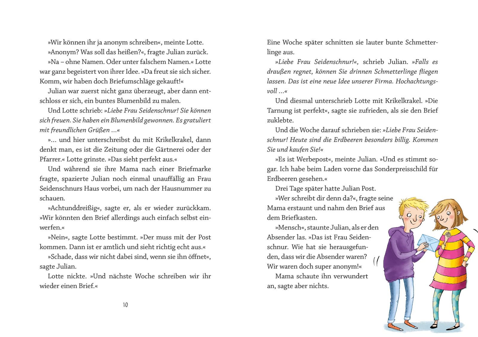 Lotte und Julian sind beste Freunde und zusammen haben sie die allerbesten Ideen: Sie retten für Lottes Mama den Sommer, erfinden alternative olympische Spiele, bei denen alle gewinnen können, oder schreiben heimlich Überraschungsbriefe, die nicht nur die Empfängerin glücklich machen.