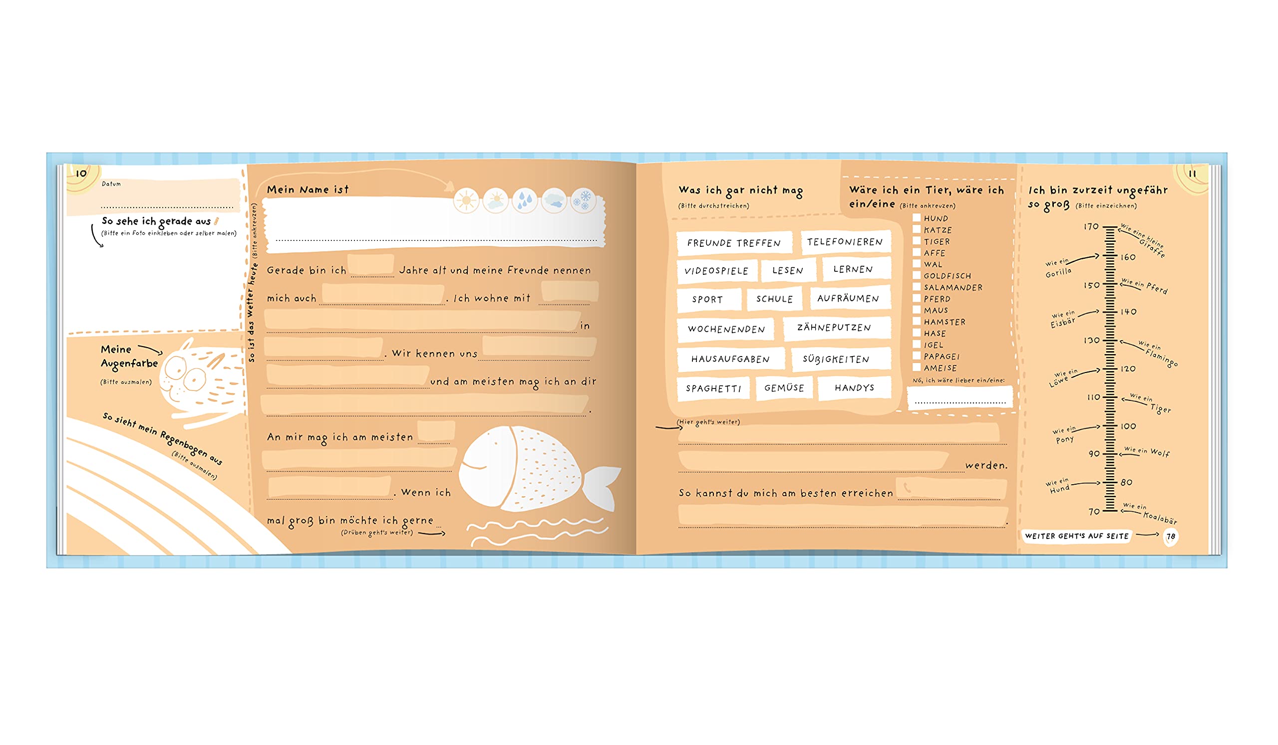 Mit dem lustigen und von Hand liebevoll illustrierten Freundebuch kannst du dich immer wieder an deine Freunde aus Kindergarten und Schule erinnern. Das Freundebuch, Poesiealbum hat 84 feste, stabile Seiten, damit sich alle Freunde und Familienmitglieder verewigen können. Jeder hat eine Doppelseite zum Eintragen mit viel Platz für ein Bild und Informationen, wie z.B. "Spitzname", "Woher wir uns kennen", "Das mag ich an dir am meisten", "Das mag ich gar nicht", "Das möchte ich später einmal werden". Für alle, die lieber malen als schreiben gibt es auch extra Seiten sowie Seiten für Fingerabdrücke von allen Freunden. Individuelles, liebevolles und kindgerechtes Design von Stay Inspired! by Lisa Wirth