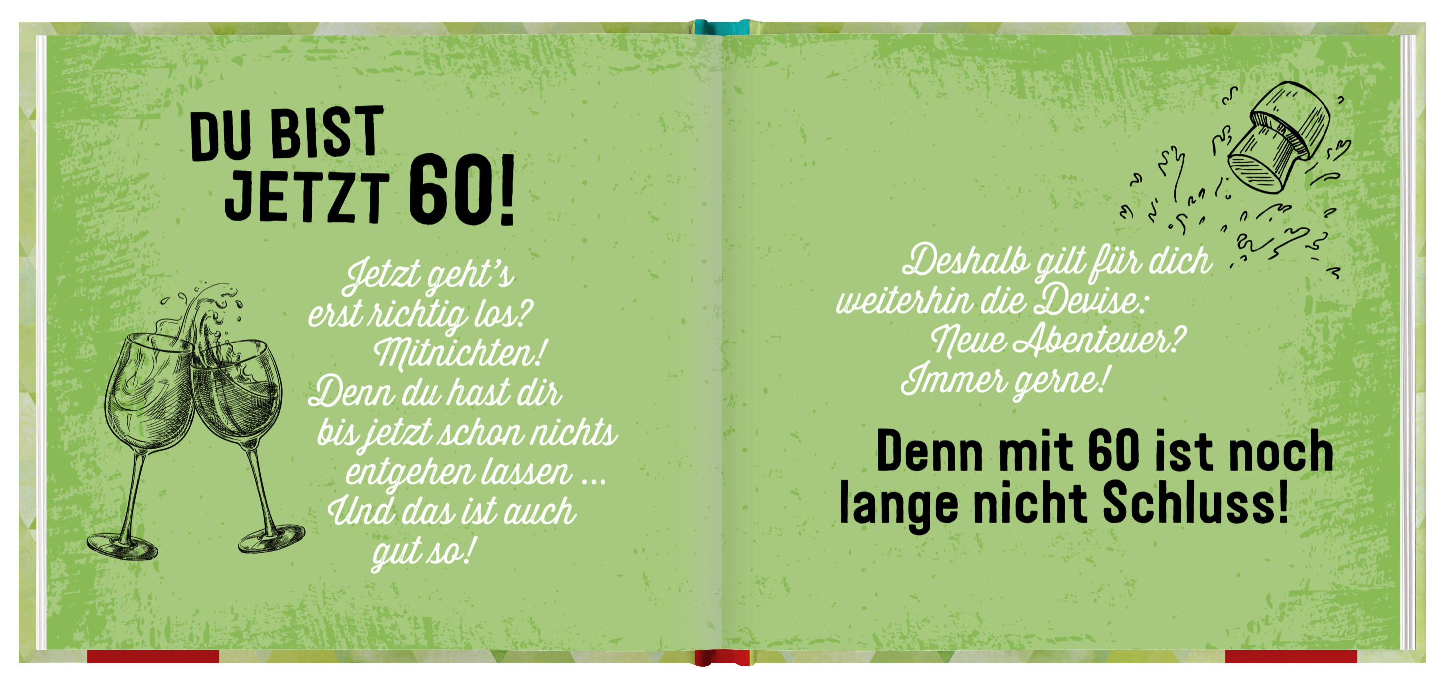 Ob für Frau oder Mann, dieses Geschenkbuch ist der ideale Begleiter zu einer Flasche Wein oder zu einem Blumenstrauß zum 60. Geburtstag. Mit einem Augenzwinkern und der farbenfrohen Gestaltung in Vintage-Optik sorgt es auf der Geburtstagsparty für einige Lacher.