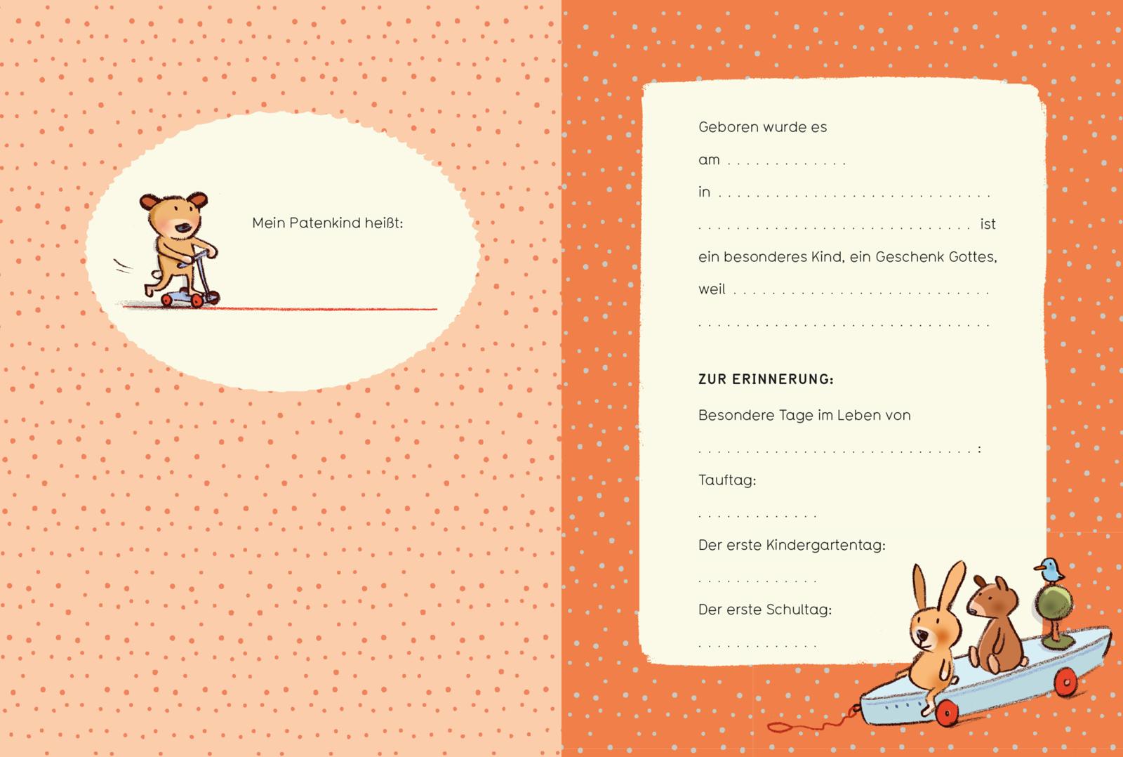 In diesem kleinen Einsteckalbum ist Platz für dreißig Bilder im Format 10 x 15 cm ideal. Zusätzlich kann auf vier farbigen illustrierten Seiten Persönliches zum Patenkind eingetragen werden, zum Beispiel, wann es in den Kindergarten oder in die Schule kam.