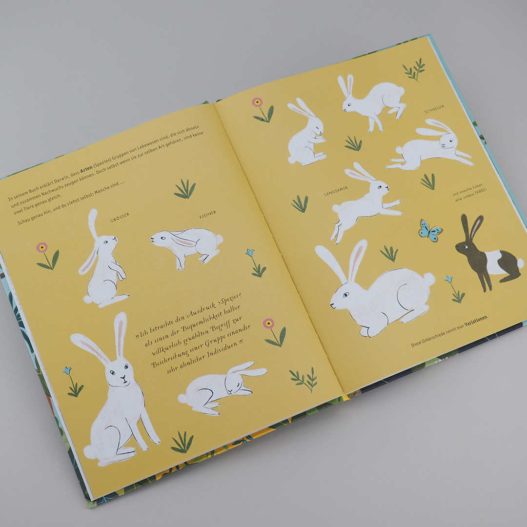 Warum haben Giraffen einen so langen Hals und Elefanten einen Rüssel? Wieso gleicht kein Hase dem anderen? Und sind Pferd, Zebra und Esel tatsächlich miteinander verwandt? All das und noch viel mehr erklärt Sabina Radeva anhand kurzer Texte und einzigartiger Illustrationen und vermittelt so anschaulich die komplexe Evolutionstheorie. Auf diese Weise verwandelt sie Darwins wissenschaftliches Werk in einen spektakulären Hingucker für alle Altersklassen.