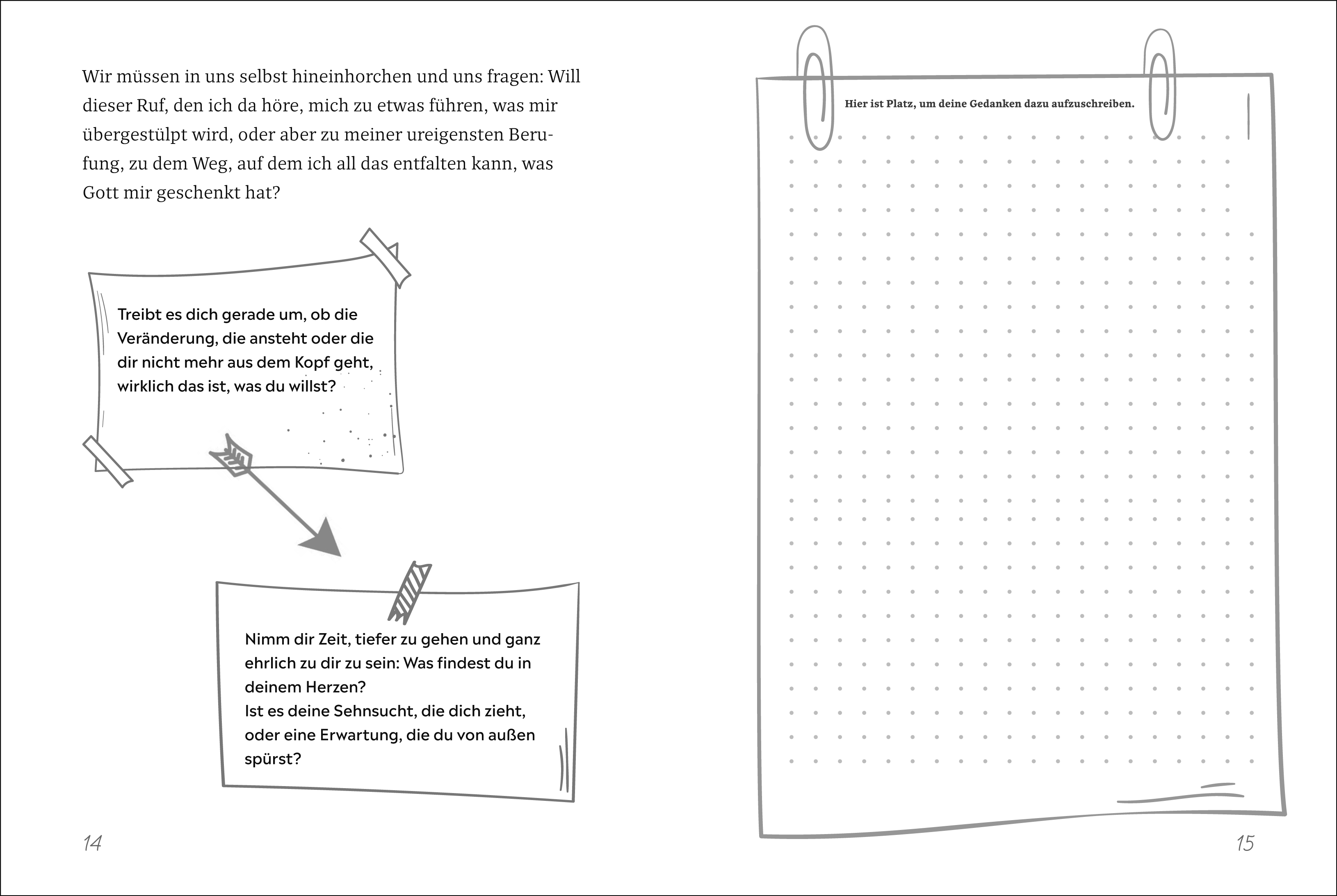 Unser Leben ist heute von vielen Unwägbarkeiten geprägt. Esfällt uns daher oft nicht leicht, den eigenen Weg und die passendeAufgabe zu finden. Häufig sind wir auch in die Entscheidunggestellt, ob wir etwas - Kleines oder Großes - ändern wollen oderob es sich lohnt, durchzuhalten und die Umstände vielleicht nocheinmal mit neuen Augen anzuschauen.Dieses Buch stellt die richtigen Fragen - aber beantworten musssie jeder Leser für sich. Es lohnt, daran zu arbeiten, mit sich undseiner Aufgabe, seinem Sein im Frieden zu leben. Daher ist vielPlatz zum Schreiben und Eintragen. Zudem hält es praktischeImpulse und Ideen für den Alltag bereit, um die gefundenen Antwortenumzusetzen. So wird das Buch zu einem wichtigen Wegbegleiter,in den man immer wieder gerne hineinschaut, der ergänzt undweitergeschrieben werden kann, bis er zu einem ganz eigenenBuch werden lässt
