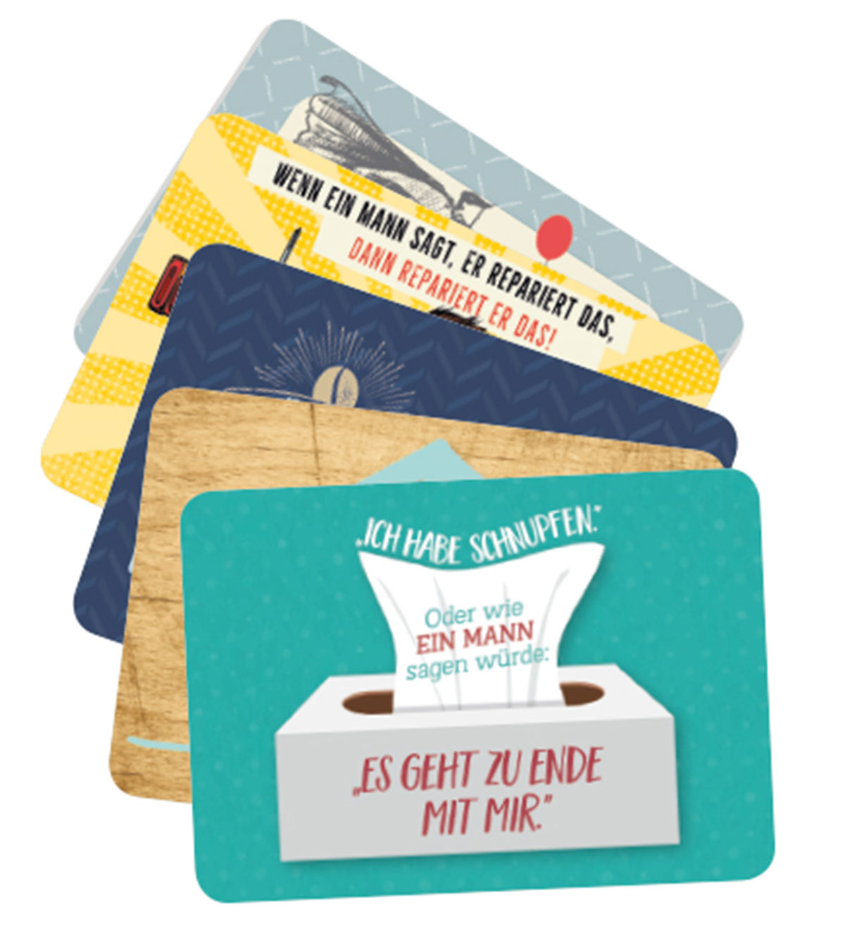 12 grafisch-illustrierte Postkarten mit humorvollen Zitaten und Sinnsprüchen für echte Kerle