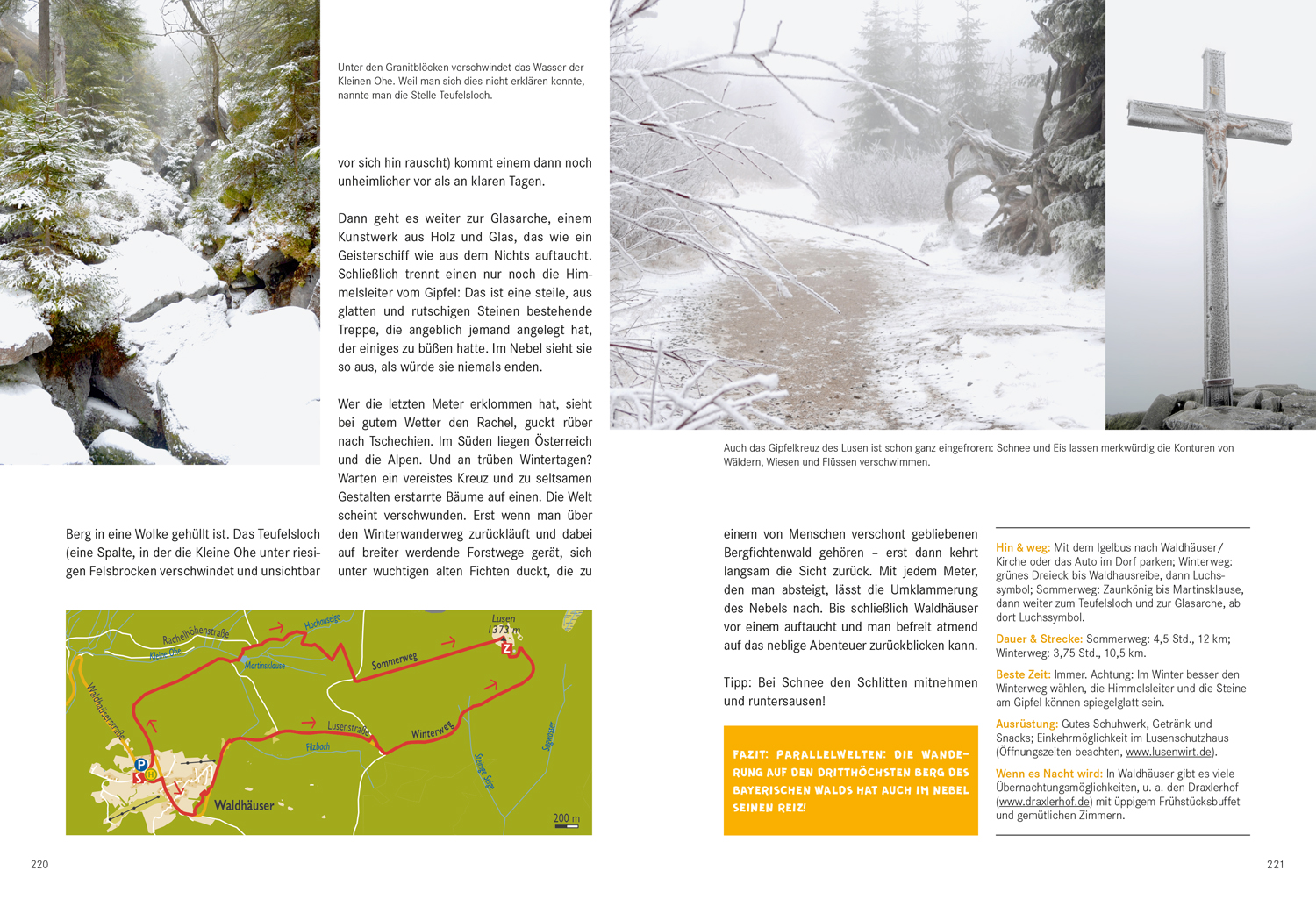Ob wandern, radeln, paddeln oder in aller Ruhe die Natur genießen: 52 kleine und große Eskapaden machen Lust, die schönsten Ecken im Bayerischen Wald zu entdecken. Für wenige Stunden, einen Tag oder ein Wochenende - unwiderstehliche Ausflüge ins Grüne warten in der Region von der Donauebene bis mitten rein in den Bayerischen Wald. Einen steinernen Drachen finden, Mooraugen sammeln, in drei Sekunden drei Länder beschreiten ... - es ist so einfach, mehr zu erleben als das Bekannte. Also ab nach draußen!
