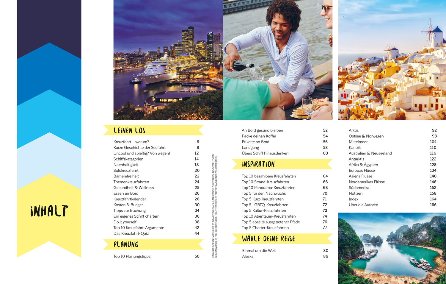 Kreuzfahrten liegen im Trend und für alle, die sich das erste Mal an Bord begeben wollen, hat Lonely Planet ein modernes Handbuch zusammengestellt, das schön, praktisch und inspirierend zugleich ist. Es punktet mit unterhaltsamen Entscheidungshilfen (Warum gehst du eigentlich auf Kreuzfahrt? Bist du eher der Kultur- oder der Wellness-Typ?) und stellt die interessantesten Kreuzfahrten weltweit vor. Praktische Tipps für Planung und Buchung sowie für das Leben an Bord machen den handlichen Ratgeber zu einem smarten Geschenkbuch und Reiseplaner.