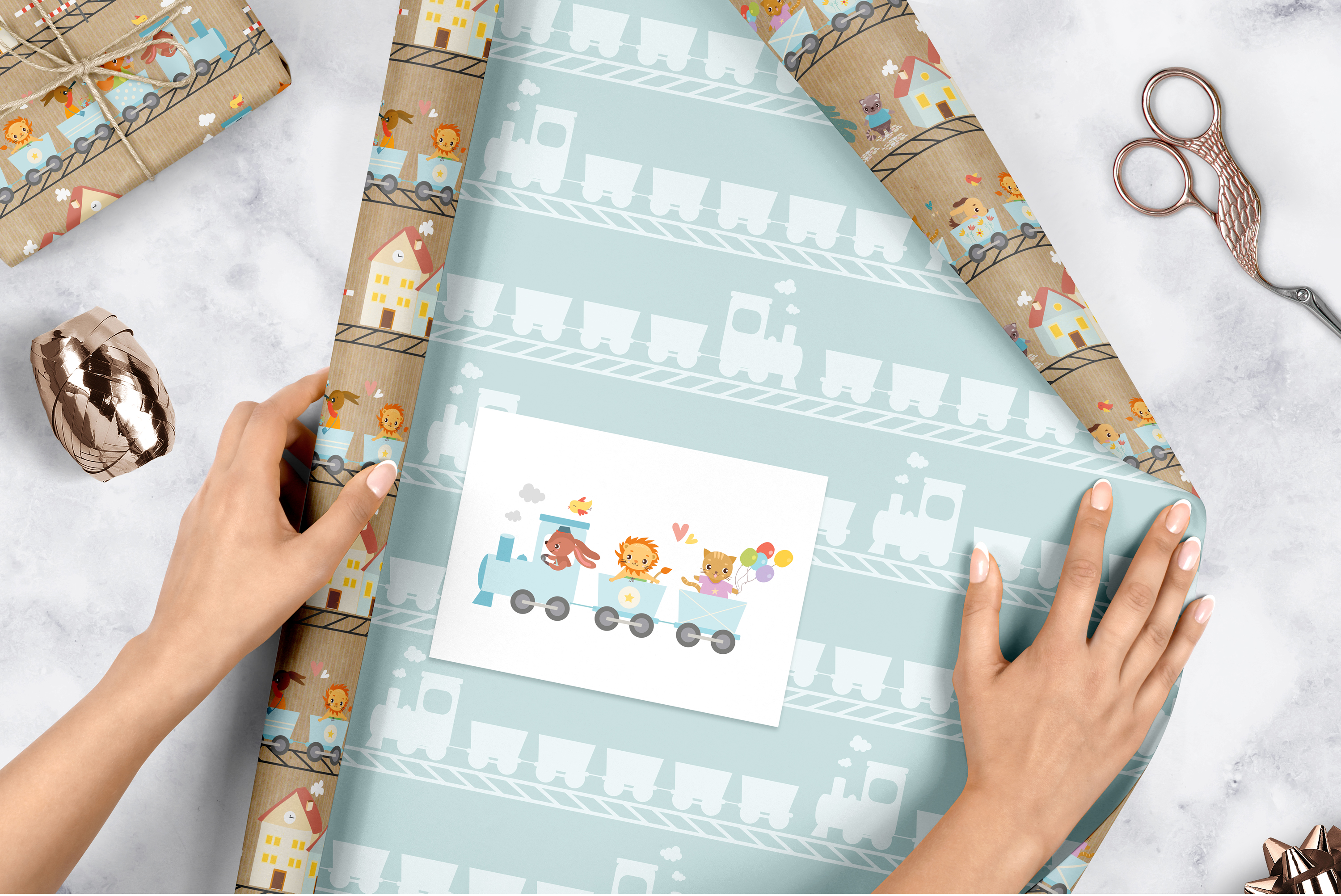 Geschenkpapier-Set für Kinder: Eisenbahn