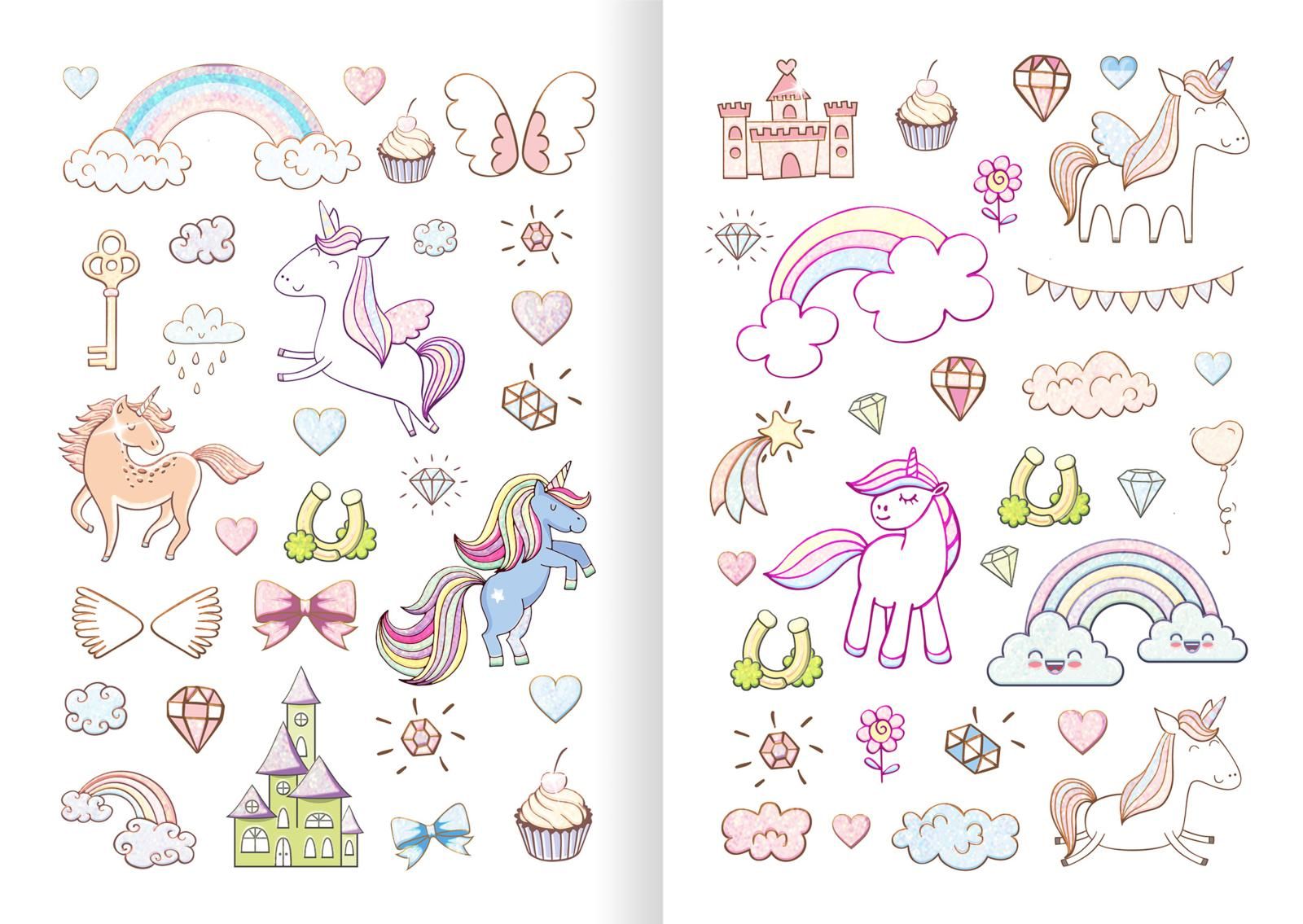 In diesem Heft findest du viele zauberhafte Glitzersticker rund um die Welt der Einhörner.
