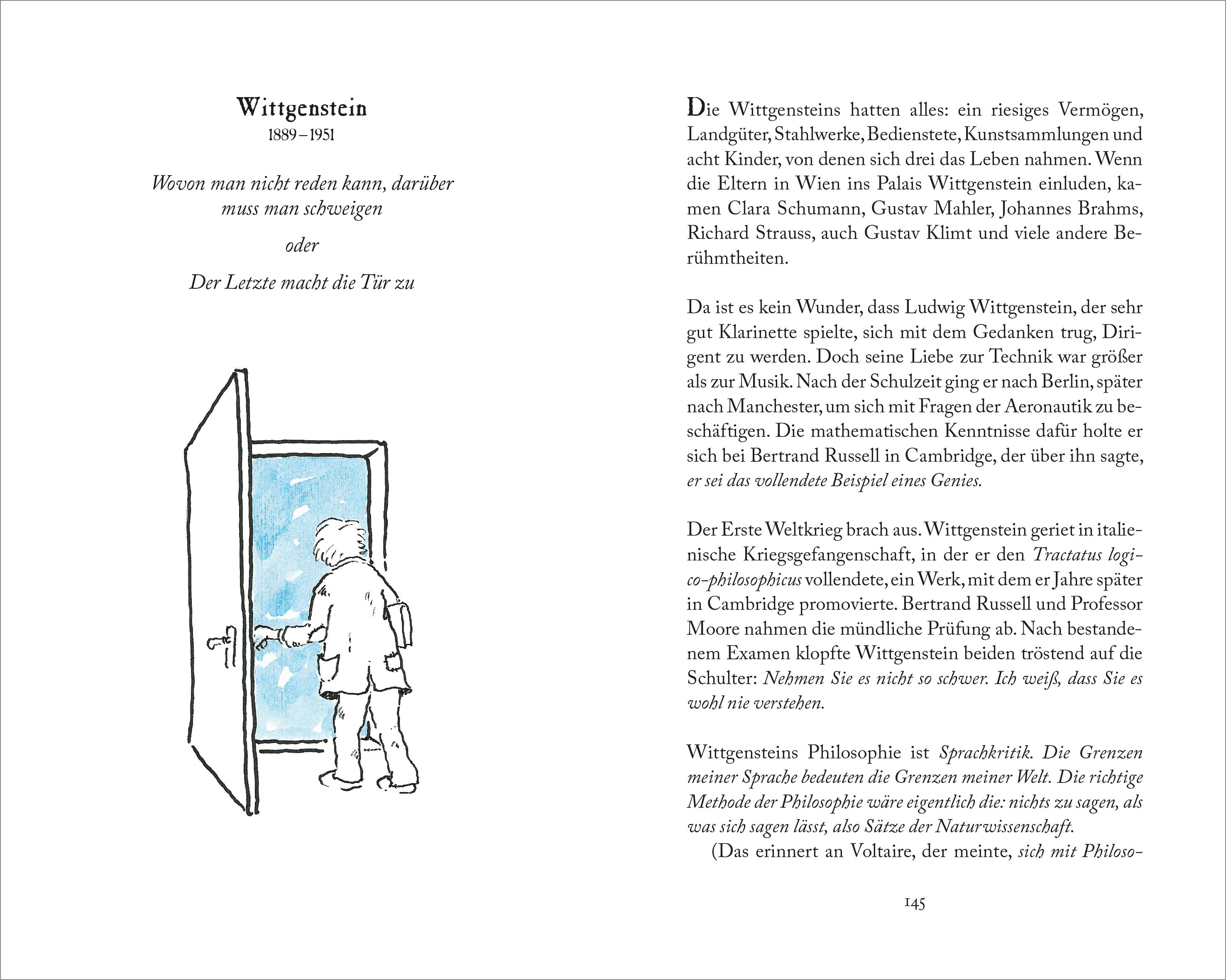 »Die kleinen Texte lassen auf ausgiebige Lektüre und Lust am (Mit-)Denken schließen und wirken ansteckend; die gezeichneten Porträts bannen teilweise ein ganzes Denkerleben in eine markante Pose oder Szene.«