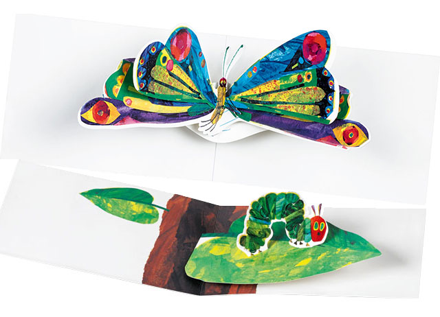 Die hochwertigen Klappkarten mit Pop-up-Effekt gibt es mit den Motiven „Kleine Raupe Nimmersatt“ und „Schmetterling“ , jeweils mit einem farbigen Umschlag im Polybag. Diese tollen Karten sind ein Hingucker auf jedem Geburtstagstisch, ansonsten aber auch – da blanko – für jeden Anlass geeignet.