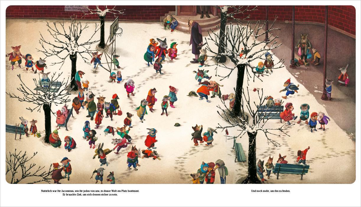 »Mit ihrem emphatischen Nachdenken über das Leben des Jacominus bestätigen sie die These Dautremers, dass, auch wenn viele Bilder und Passagen in dem Buch den Kindern rätselhaft erscheinen mögen, beim genauen Hinschauen in jedem Leben eine Menge zu entdecken ist – gerade, wenn es mit anderen geteilt wird.«