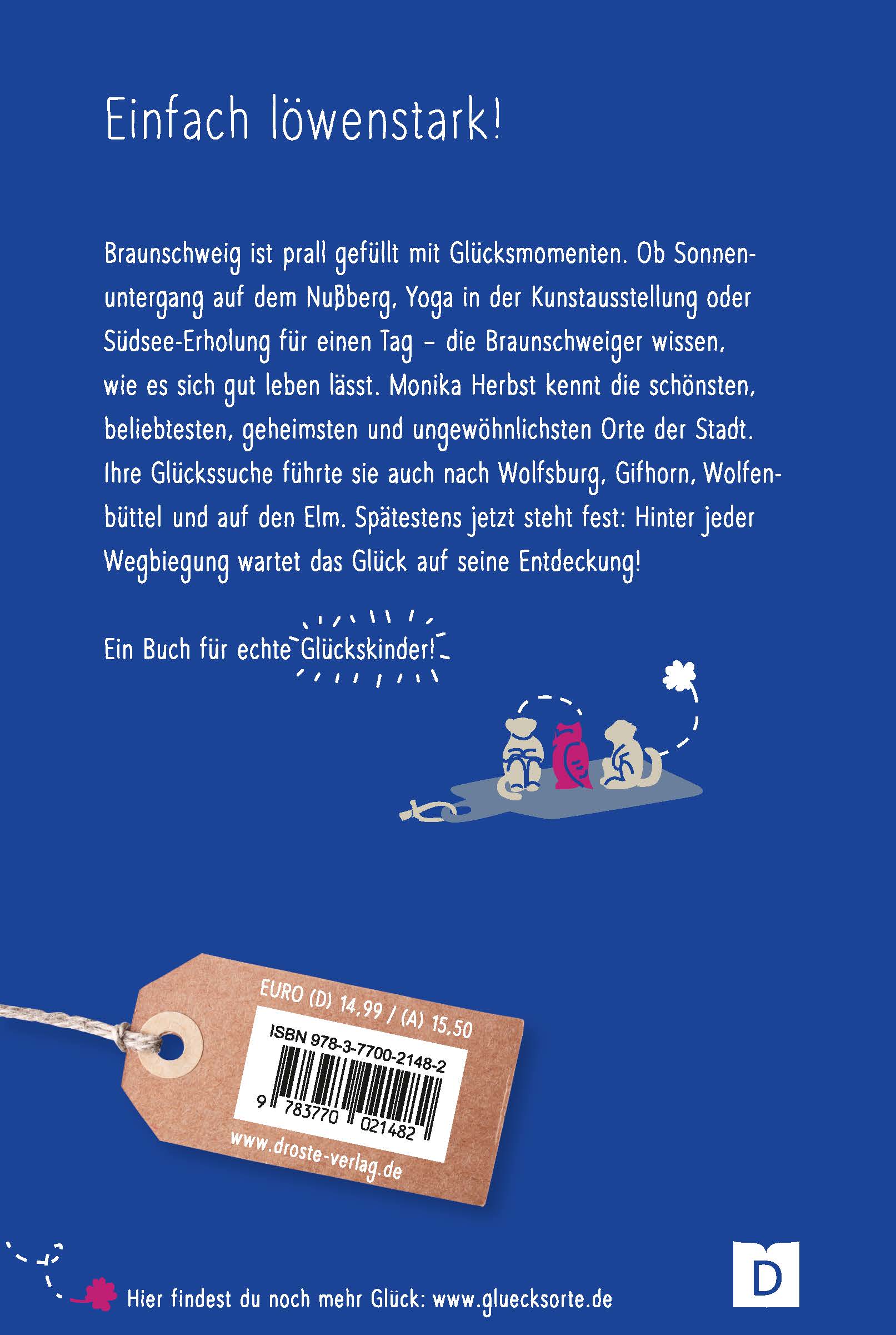 Die Löwenstadt ist prall gefüllt mit Glücksmomenten. Ob Sonnenuntergang auf dem Nußberg, Yoga in der Kunstausstellung oder Südsee-Erholung für einen Tag - Die Braunschweiger wissen, wie es sich gut leben lässt. Monika Herbst kennt die schönsten, beliebtesten, geheimsten und ungewöhnlichsten Orte der Stadt. Ihre Glückssuche führt sie auch nach Wolfsburg, Gifhorn, Wolfenbüttel und auf den Elm. Spätestens jetzt steht fest: Hinter jeder Wegbiegung wartet das Glück auf seine Entdeckung!