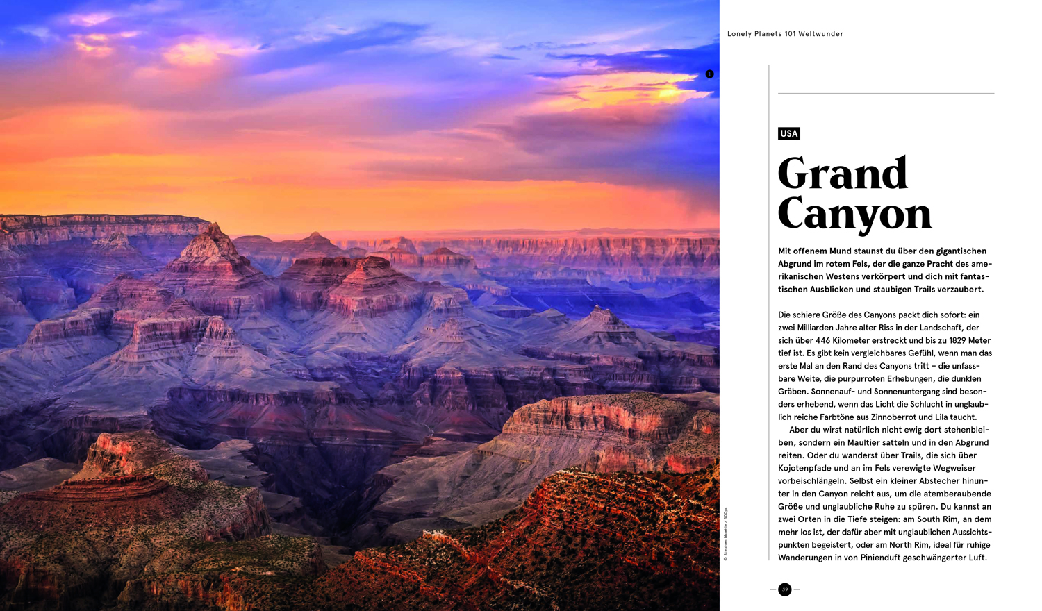 Faszinierende Fotografien machen Lust auf die atemberaubendsten Naturphänomene, die spektakulärsten Ruinen und die Wunder unserer modernen Zeit. Dazu gibt es Vorschläge zur besten Reisezeit und zu weiteren Sights in der Umgebung, mit denen sich dein Trip nach Belieben verlängern lässt. Egal ob Back- oder Flashpacker, Sparfuchs oder Luxustraveller: Hier findet sich für jeden Schatzsucher das Passende!