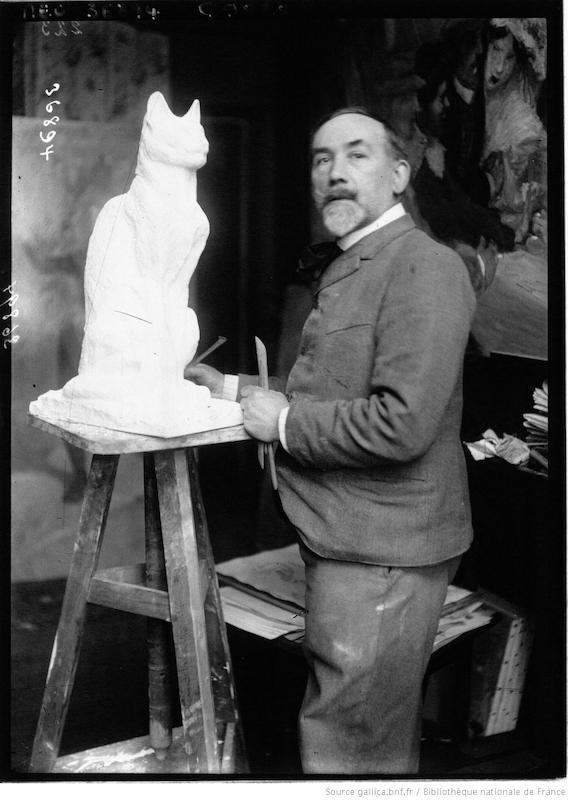 Théophile Alexandre Steinlen, geboren 1859 in Lausanne, gestorben 1923 in Paris, war Maler, Zeichner, Grafiker und Illustrator. Nach einer Lehre als Textilmusterzeichner zog er nach Paris, ins Künstlerviertel am Montmartre. Dort lernte er u. a. Henri de Toulouse-Lautrec, Émile Zola und Anatole France kennen und wurde ein gesuchter Illustrator für Zeitungen und satirische Zeitschriften. Insbesondere seine Katzendarstellungen sind bis heute bekannt und beliebt. Daneben widmete sich Steinlen sozialkritischen Themen. Straßenszenen, Armut und Not und die Schrecken des Krieges prägten zeitlebens sein Werk.
