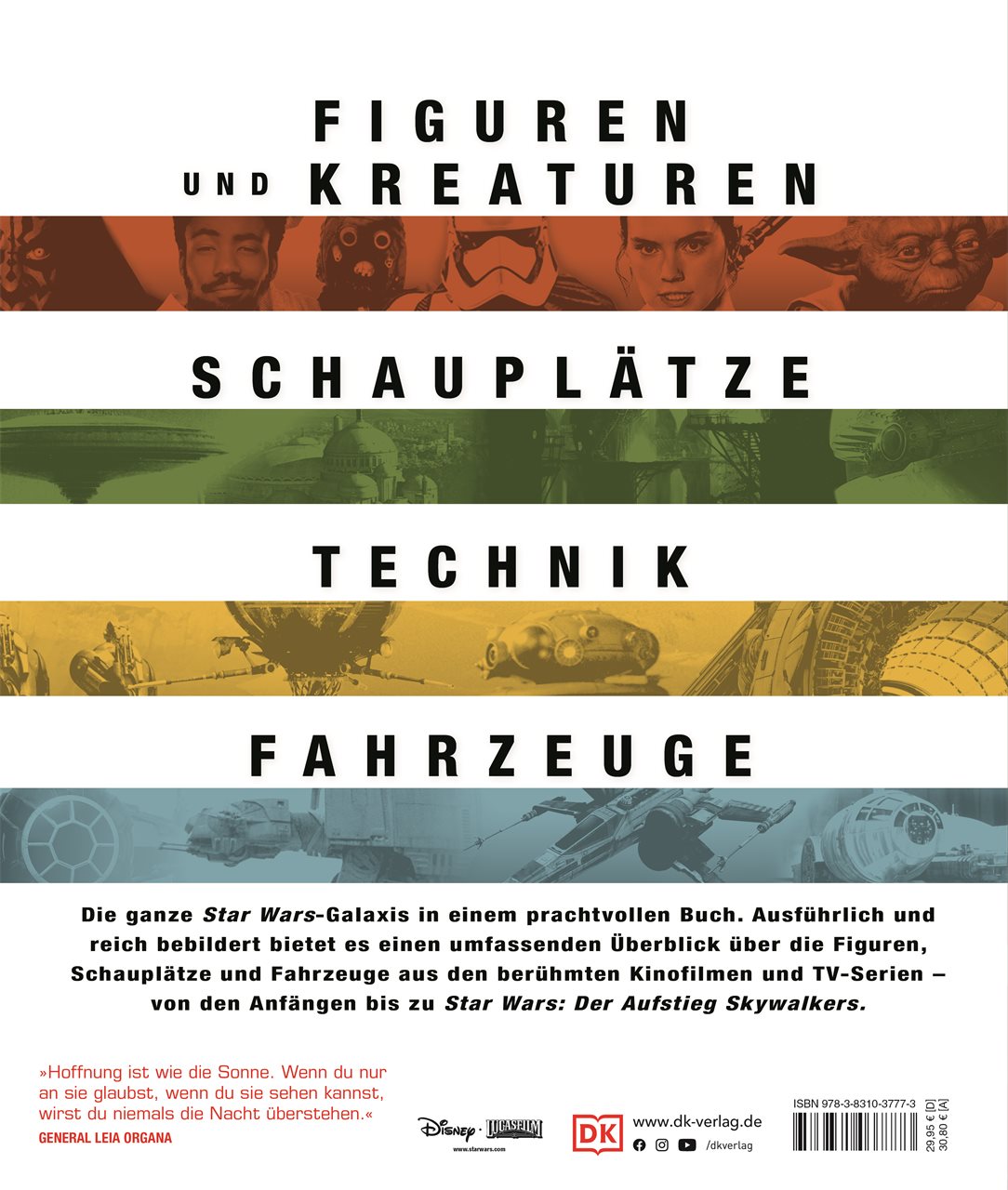 Von den Filmen der Skywalker-Saga über die A Star Wars Story -Kinoabenteuer bis zur neuesten Animationsserie Star Wars Resistance in insgesamt vier Kapiteln finden Fans alles , was sie jemals zu Darth Vader, Yoda oder dem Millennium Falken wissen wollten. Eine einführende Zeitleiste mit Originalfilmfotos gewährt einen Überblick zu den Großereignissen der Saga. Die wichtigsten Figuren, Schauplätze und Fahrzeuge werden auf faszinierenden Doppelseiten vorgestellt für Action & Spannung von der ersten bis zur letzten Seite ist gesorgt!