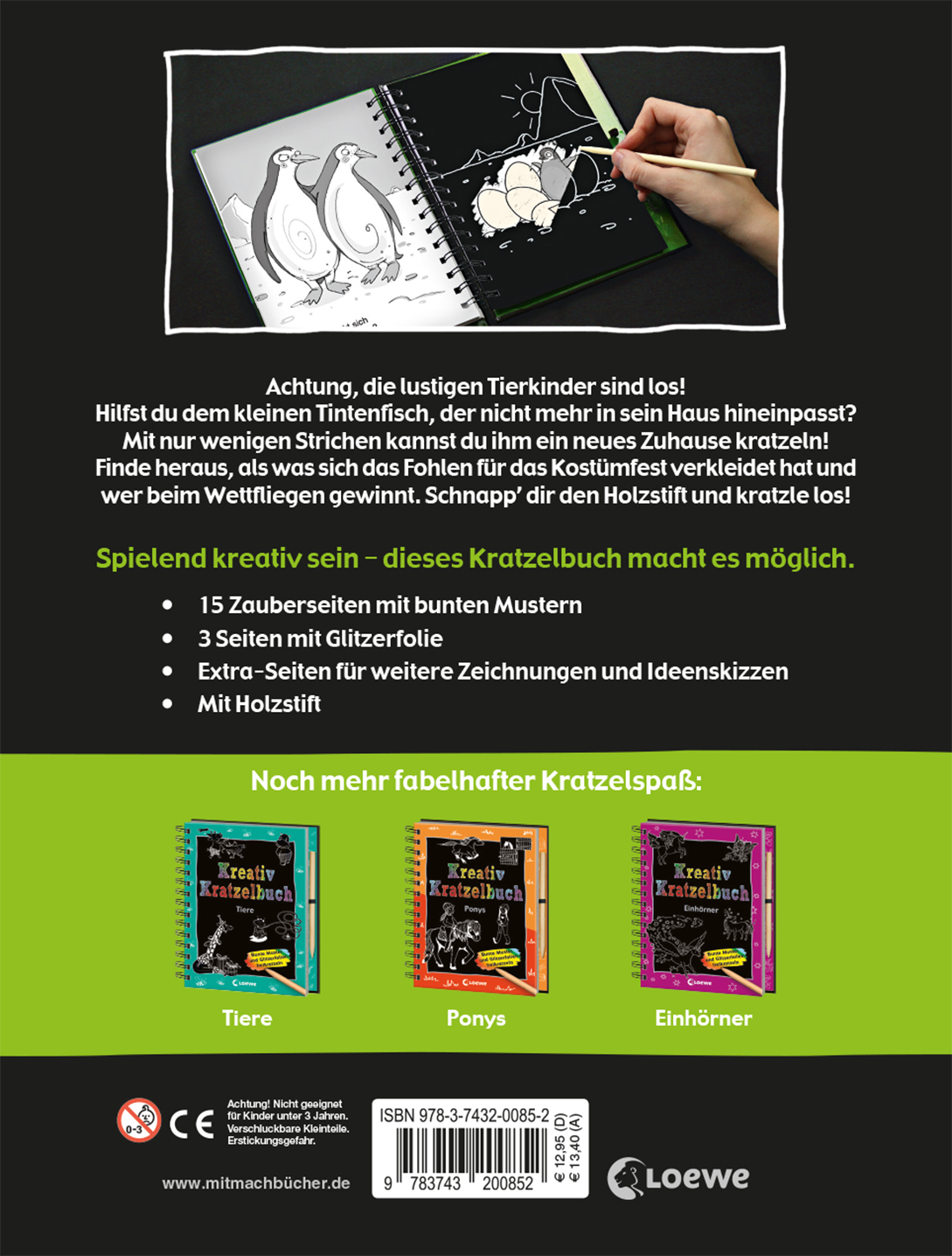 Mit ihrer Fantasie können die Kinder auf den schwarzen Kratzelseiten, unter denen sich bunte Muster und Glitzerfolien verbergen, zahlreiche Motive entstehen lassen oder lustige Weitermalbilder bearbeiten. Das Kreativ-Kratzelbuch ist mehr als ein einfaches Malbuch und bietet die ideale Beschäftigung für Kinder ab 5 Jahren.