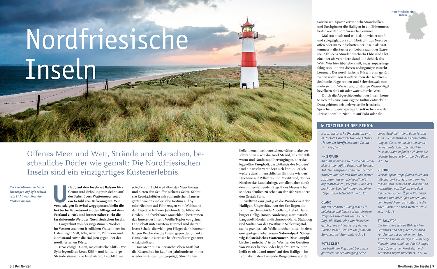 Der NordenNordfriesische InselnOstfrieslandLüneburger Heide und WendlandHolsteinische SchweizRügen und UsedomMecklenburgische Seenplatte