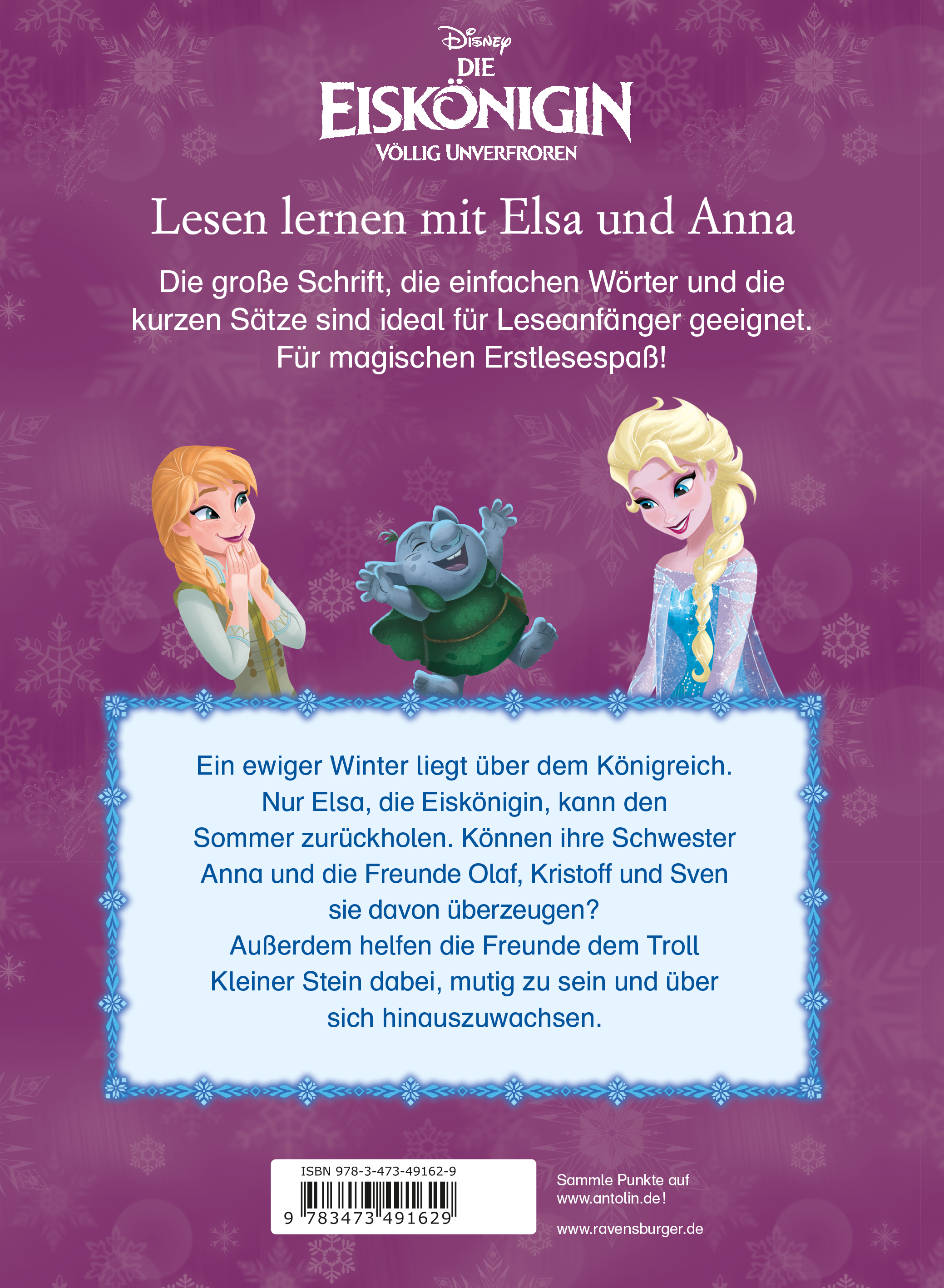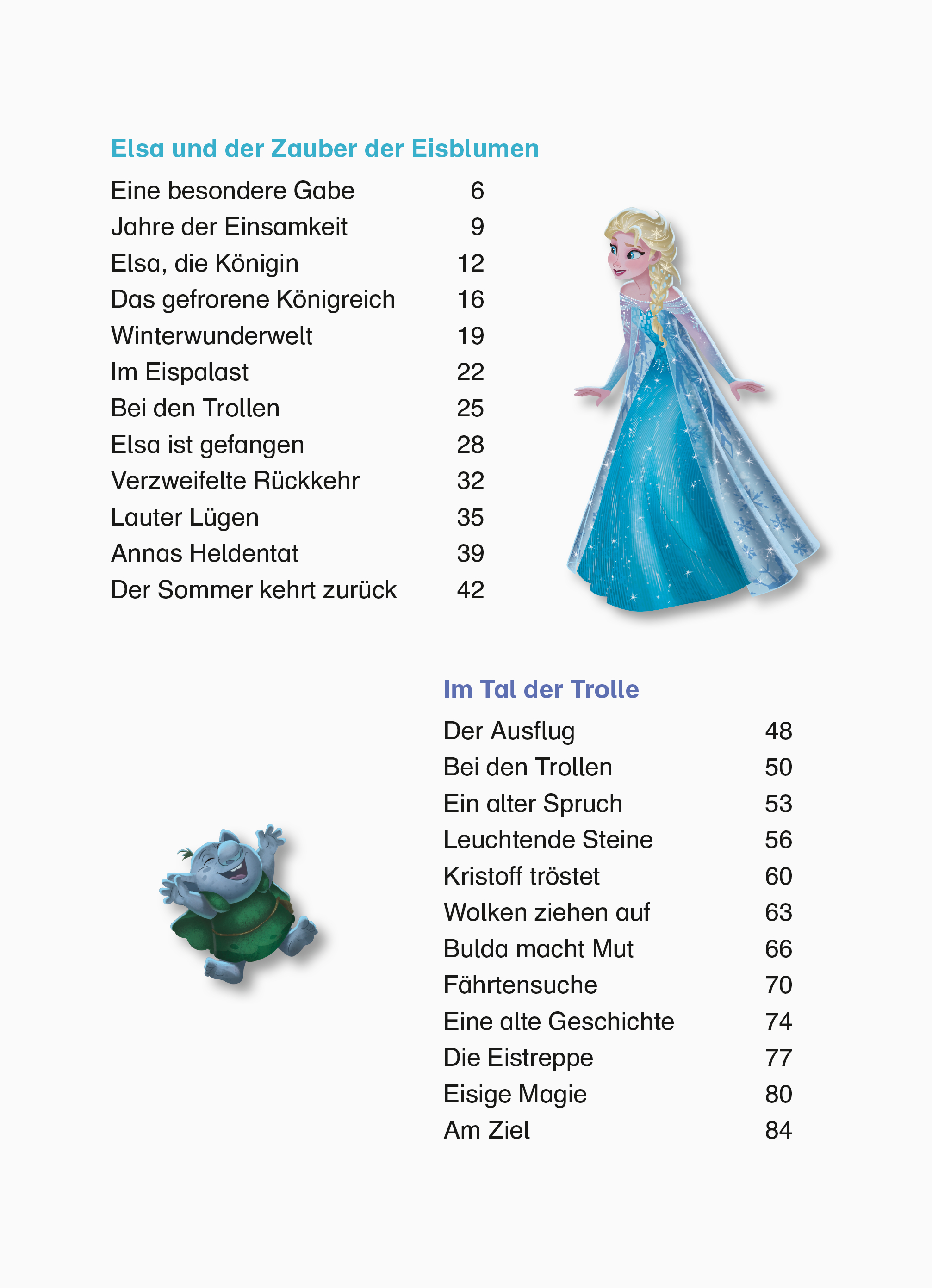 Zwei magische Geschichten zu Disneys Die Eiskönigin in einem Band!Zum Vor- und Selberlesen: Die große Schrift, die einfachen Wörter und kurzen Sätze sind ideal für Leseanfänger. So macht lesen lernen Spaß!Nur Elsa, die Eiskönigin, kann den ewigen Winter beenden und den Sommer nach Arendelle zurückholen. Können ihre Schwester Anna und die Freunde Olaf, Kristoff und Sven sie davon überzeugen?In einem weiteren Abenteuer führt Kristoff seine Freunde Anna, Elsa und Olaf ins Tal der Trolle. Dort werden die Jungtrolle bei der Kristall-Feier geehrt. Der Troll Kleiner Stein möchte seinen Kristall auch zum Leuchten bringen und an der Feier teilnehmen. Mit der Hilfe seiner Freunde lernt er, mutig zu sein.