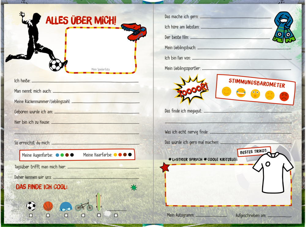Das Freundebuch für coole Fußballfans! Auf 96 Seiten können sich die ganze Mannschaft und noch viele mehr verewigen. Für alle wichtigen Geburtstage gibt es einen Geburtstagskalender.
