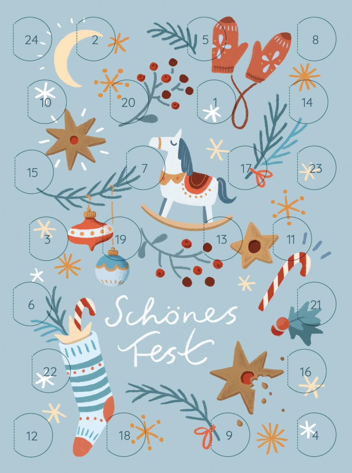 Display Adventskalender zum Verschicken (DIN A6) mit 24 Türchen und Kuvert
