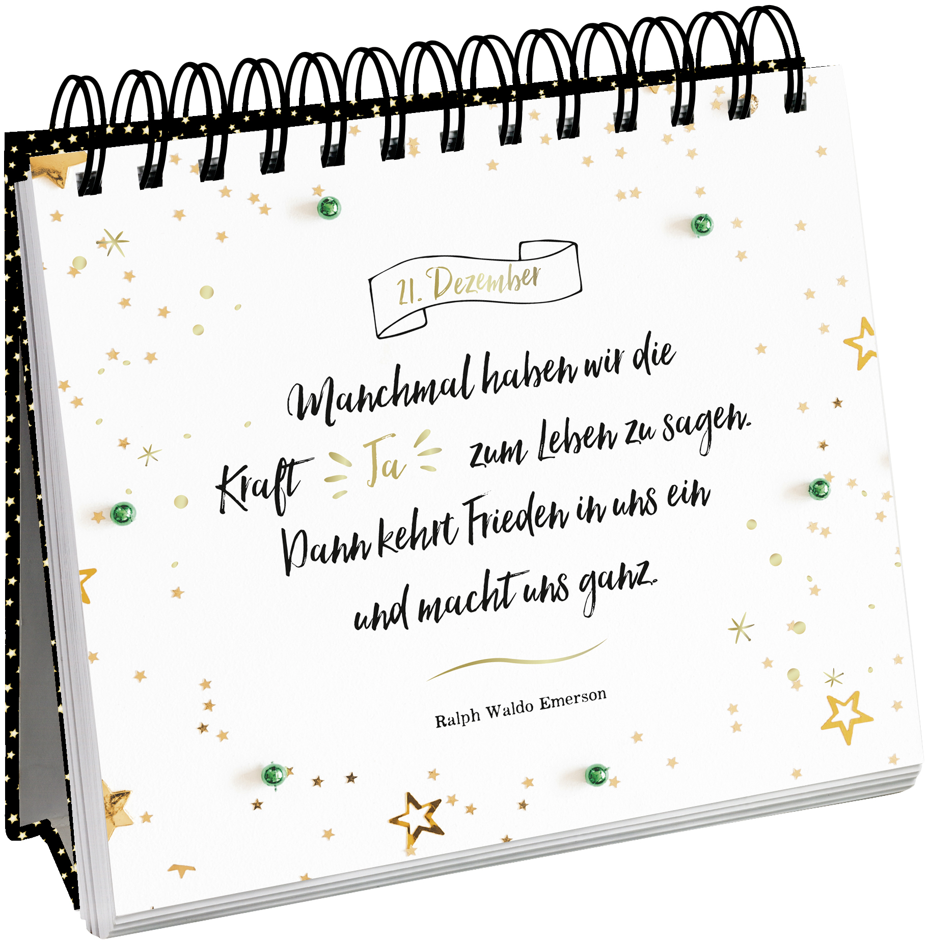 In diesem veredelten Advents-Aufsteller finden sich viele praktische Anregungen für eine entspannte Vorweihnachtszeit. Der weihnachtliche Spiralaufsteller wurde mit der Achtsamkeitsexpertin Karima Stockmann entwickelt und setzt auf den Erfolgstitel "Ich bin ganz bei mir selbst" auf. Inspirierende Tipps für mehr Achtsamkeit in der meist stressigen Vorweihnachtszeit und stimmungsvolle Zitate machen dieses Geschenkbuch unverzichtbar für eine wunderbare Vorweihnachtszeit.