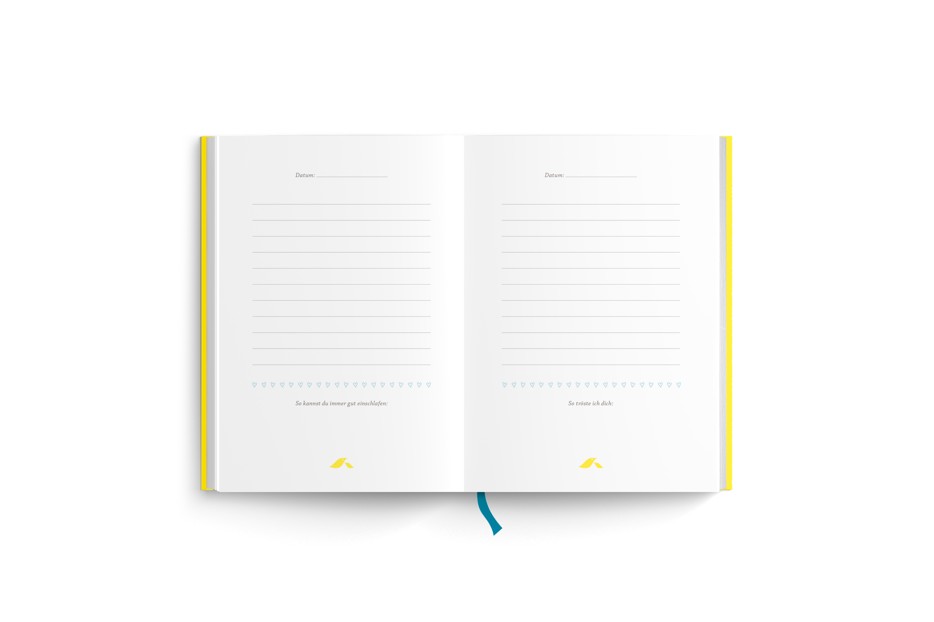 - 160-seitiges Baby Journal im zeitlos-ansprechendem Design: Hinter dem trendigen gelben Schutzumschlag verbirgt sich ein blaues Buch
