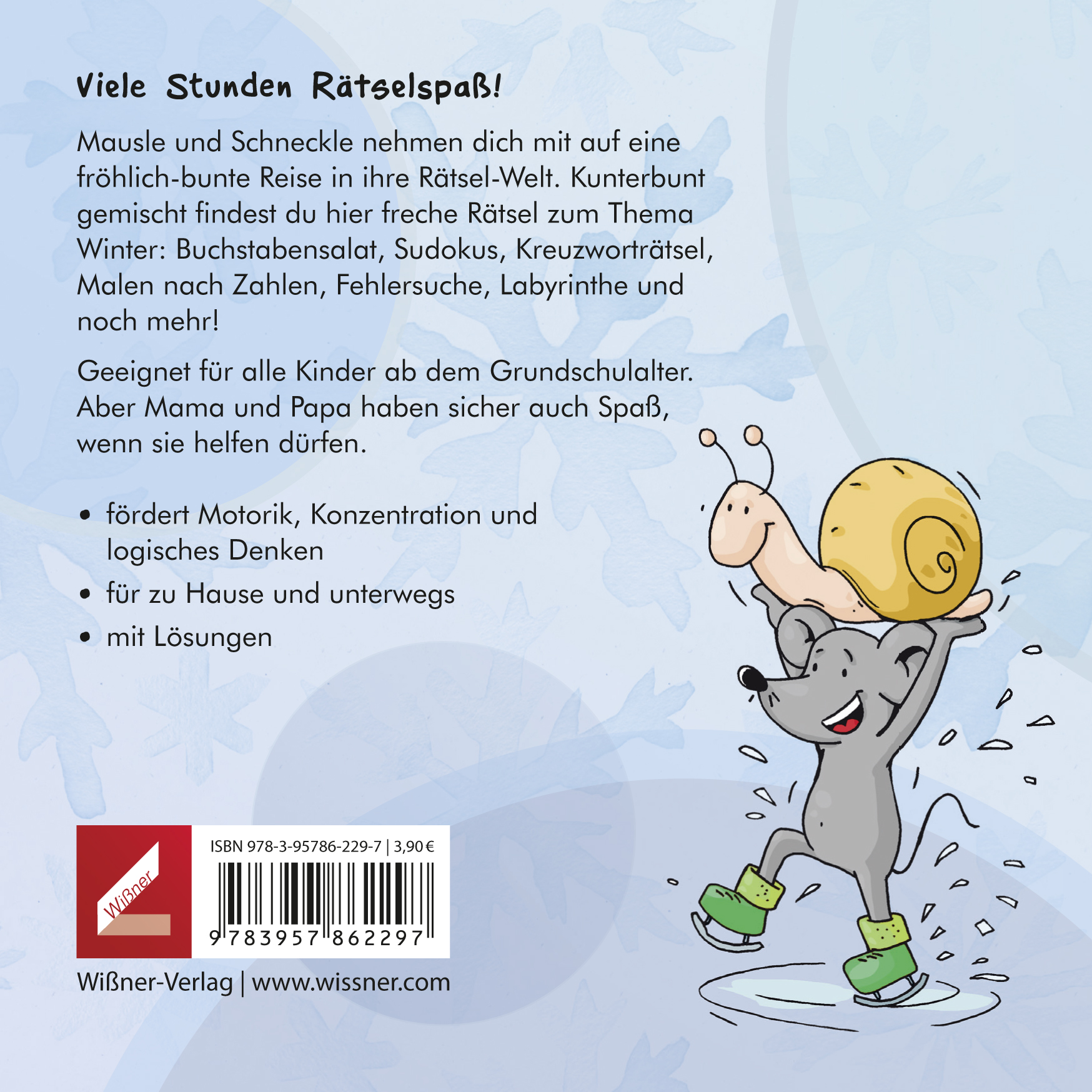 Langeweile? Gibt's hier nicht!Mausle und Schneckle nehmen dich mit auf eine fröhlich-bunte Reise in ihre Rätsel-Welt. Kunterbunt gemischt findest du hier freche Rätsel zum Thema WINTER: Buchstabensalat, Sudokus, Kreuzworträtsel, Malen nach Zahlen, Fehlersuche, Labyrinthe und noch mehr!Geeignet für alle Kinder ab dem Grundschulalter. Aber Mama und Papa haben sicher auch Spaß, wenn sie helfen dürfen.- fördert Motorik, Konzentration und logisches Denken- für zu Hause und unterwegs- mit Lösungen