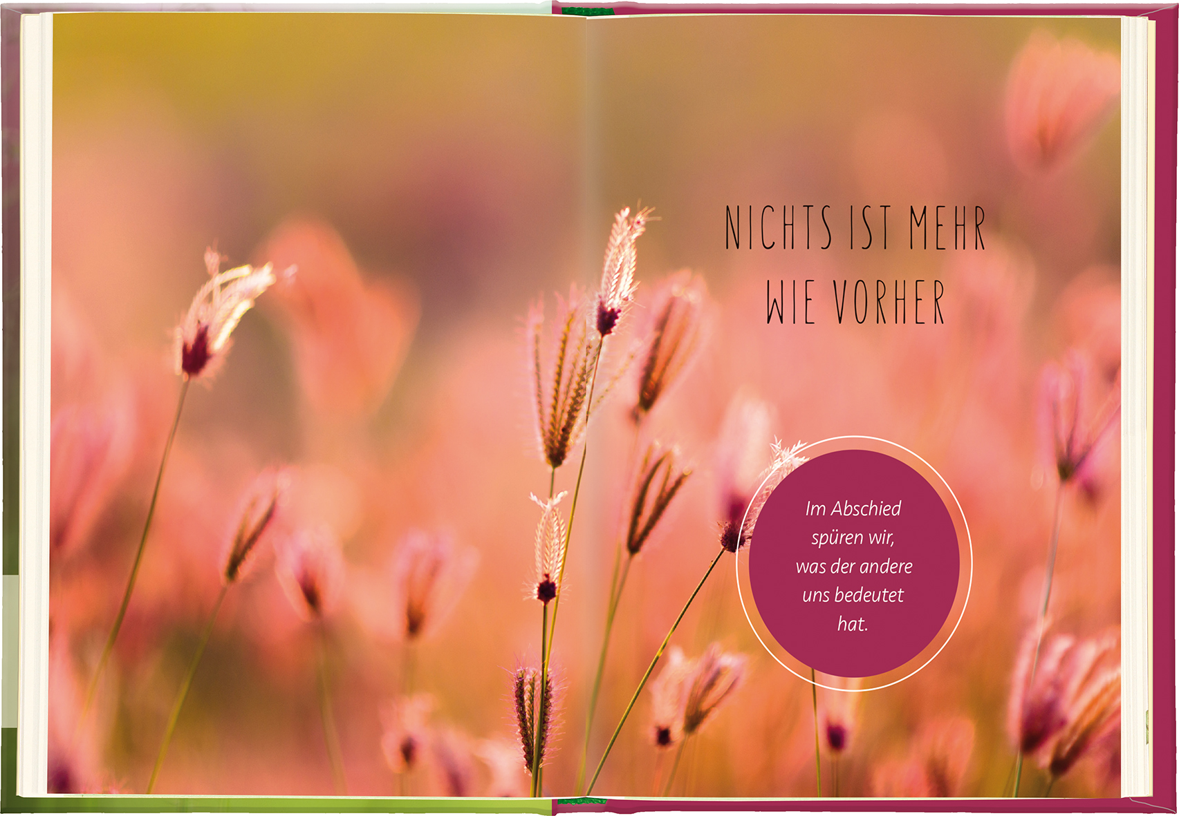 Jeder Abschied fällt schwer und ist schmerzhaft. Einfühlsame Gedanken zum Verlust eines lieben Menschen und stimmungsvolle Fotos schenken Trost, Zuversicht und neuen Mut in Zeiten der Trauer.Wen auch immer wir verlieren und loslassen müssen, nichts geht von der Liebe verloren, die uns verband. (Petra Stadtfeld)